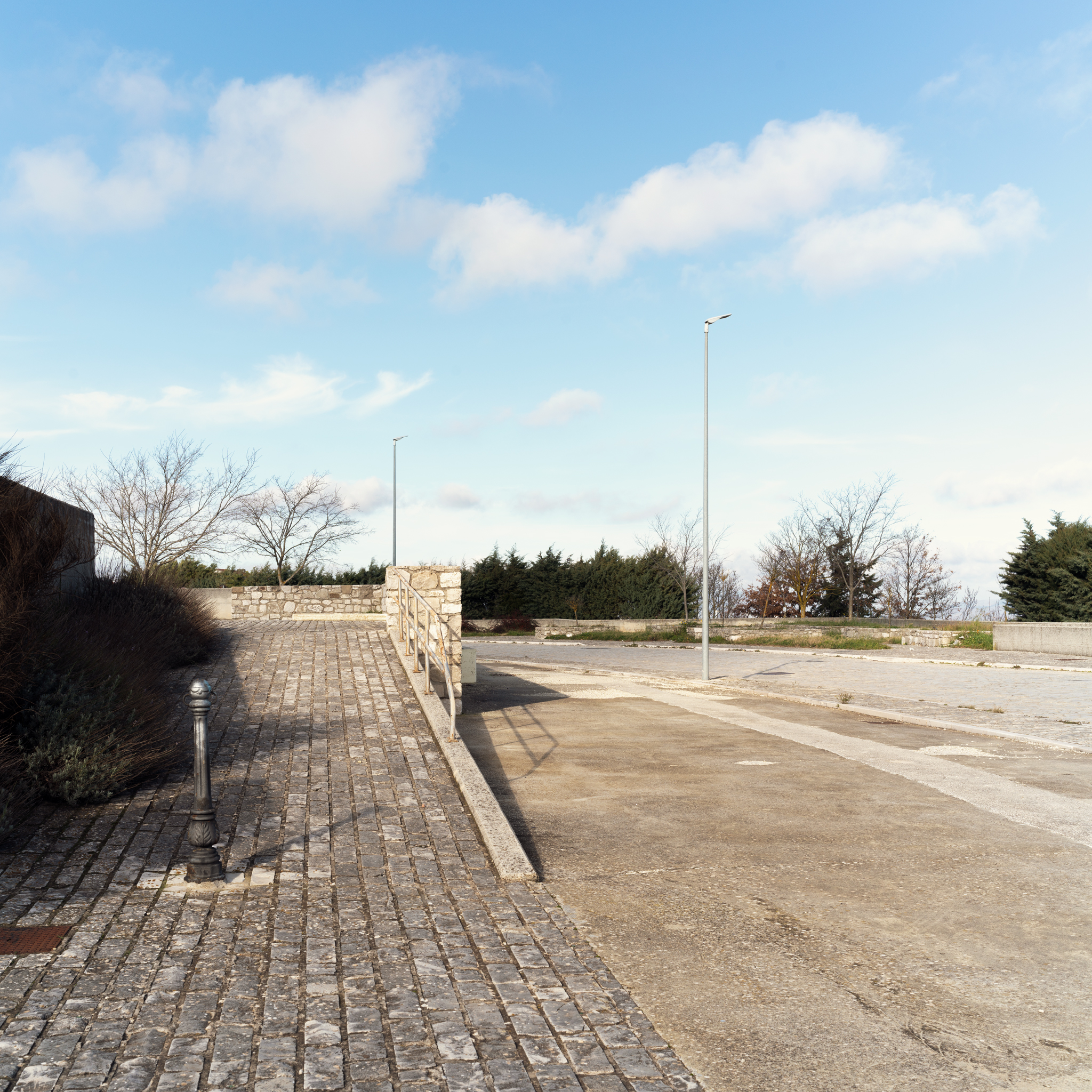 Bellizzi, Postiglione, Golfo Aranci, Atena Lucana e Bisaccia diventano tappe di una ricerca intima, attraversamenti minimi in cui il paesaggio non è scenario fine a stesso, ma esperienza vissuta. Il silenzio, la sospensione e l’attenzione per ciò che resta, le linee di confine sono gli elementi che tengono insieme queste fotografie, unite dal desiderio di ascoltare il tempo lento dei luoghi e di misurare, attraverso di essi, una distanza personale dal mondo separando quello che mi interessa allontanandomi da tutto il resto.