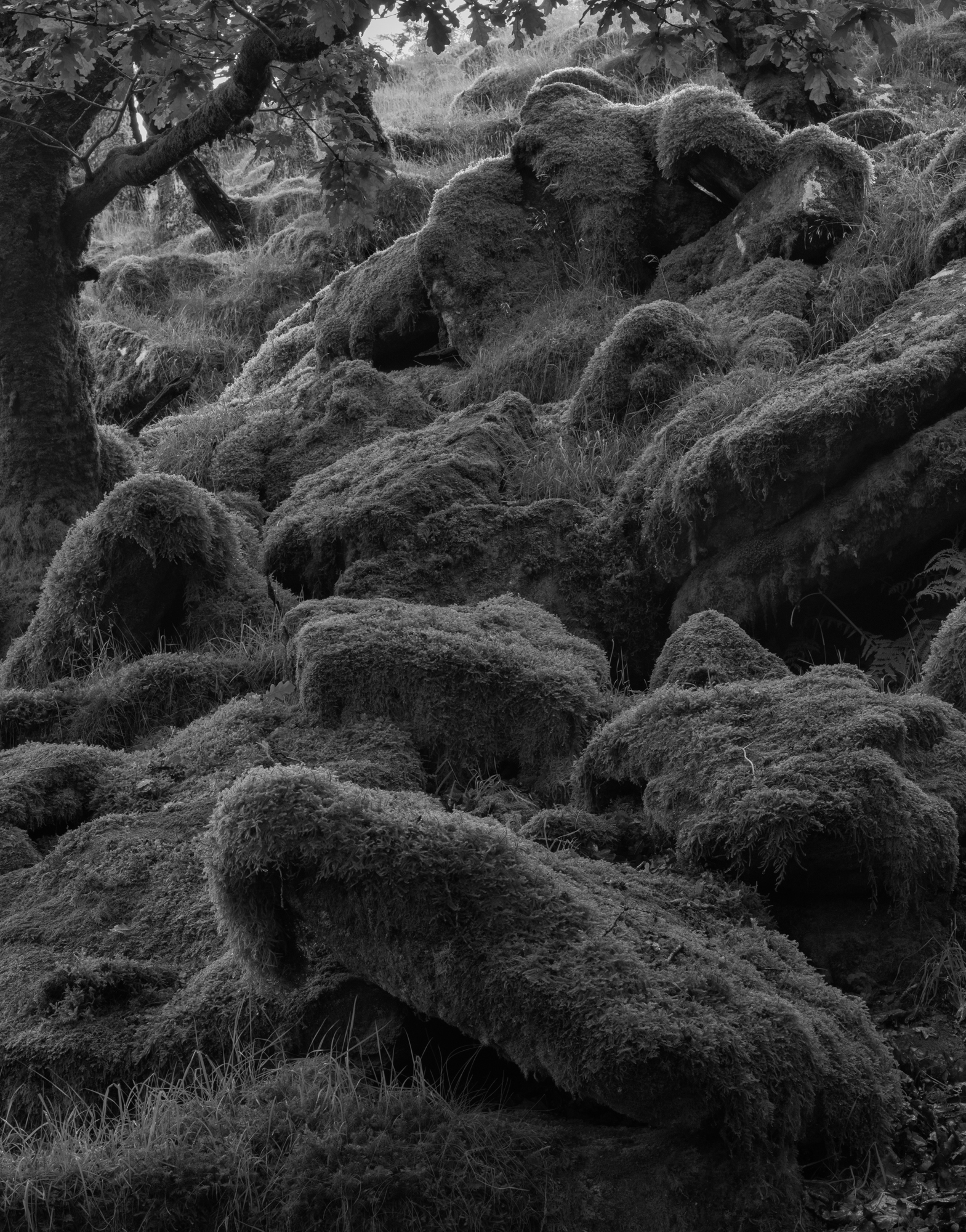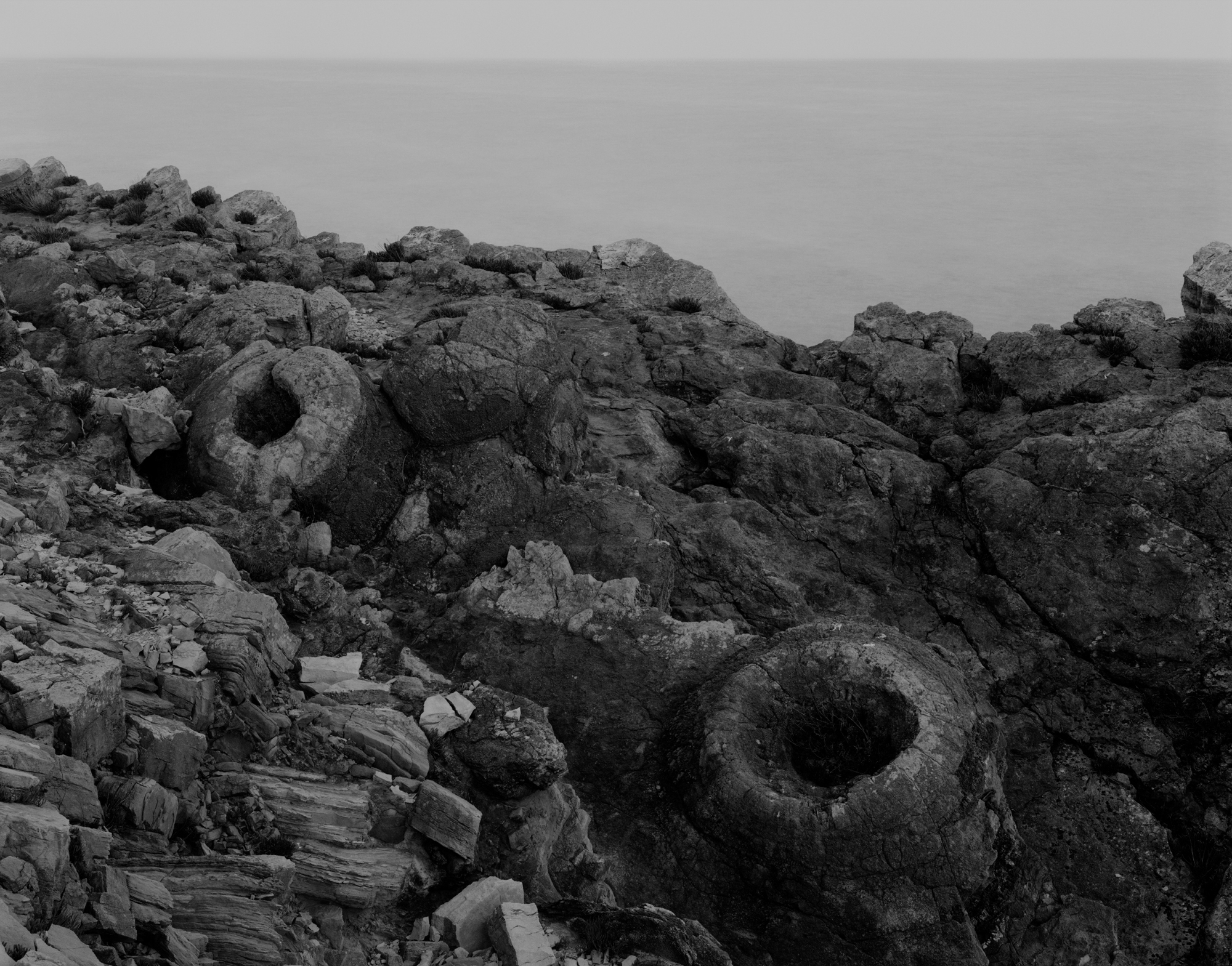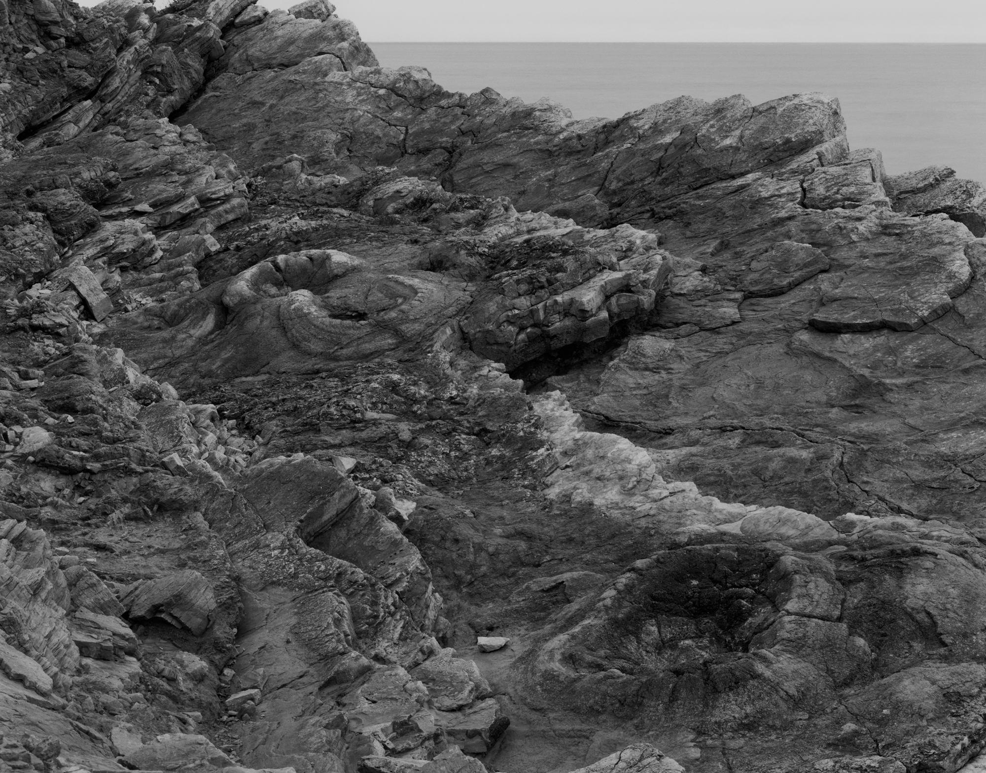 Anticline reflects upon the imperceptible processes of change that shape the landscape in deep time. The series weaves a dialogue between images of various phenomena; folded sedimentary rock, a submerged Bronze Age forest, fossilised Jurassic trees, sea-eroded natural arches, and extant temperate rainforest. Relics of ecosystems originating in the remote past persisting in the landscape, petrified at different stages of disappearance. My intention is to consider the landscape as an evolving archive- an entity in a state of continuous flux and metamorphosis, recording successive iterations of itself over time in its own fabric.