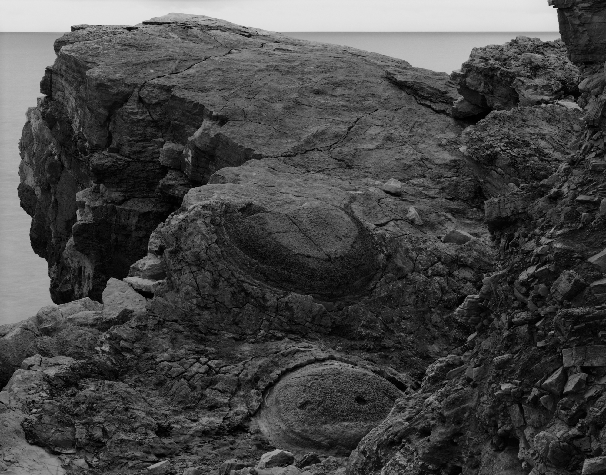 These phenomena are approached as the product of collisions between overlapping timescales, cyclical processes and geological forces: rock warps while wood resists the weight of eons, dissolving the ostensibly fixed boundary between the organic and the geologic. The images inhabit a primordial sense of time, a complex temporal web in which we are all enmeshed, against which the crises and endeavours of our species must be contextualised. From this perspective, we might see a suggestion of our precarious future in fossilised floods and prehistoric extinctions, entertaining the possibility that both deep pasts and futures might also be inhabited by the photographic instant.