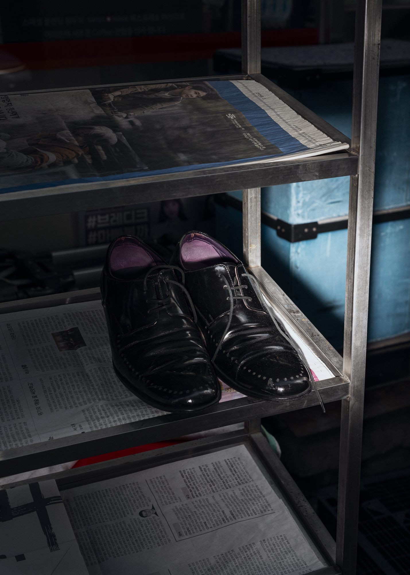 This series is driven by the consciousness of a nameless drifter, making his way through the streets of Seoul. Every photograph is a question mark which makes him pause and consider an object up close, trying to decipher its meaning through such changing emotions as anxiety, curiosity, fear or desire.
