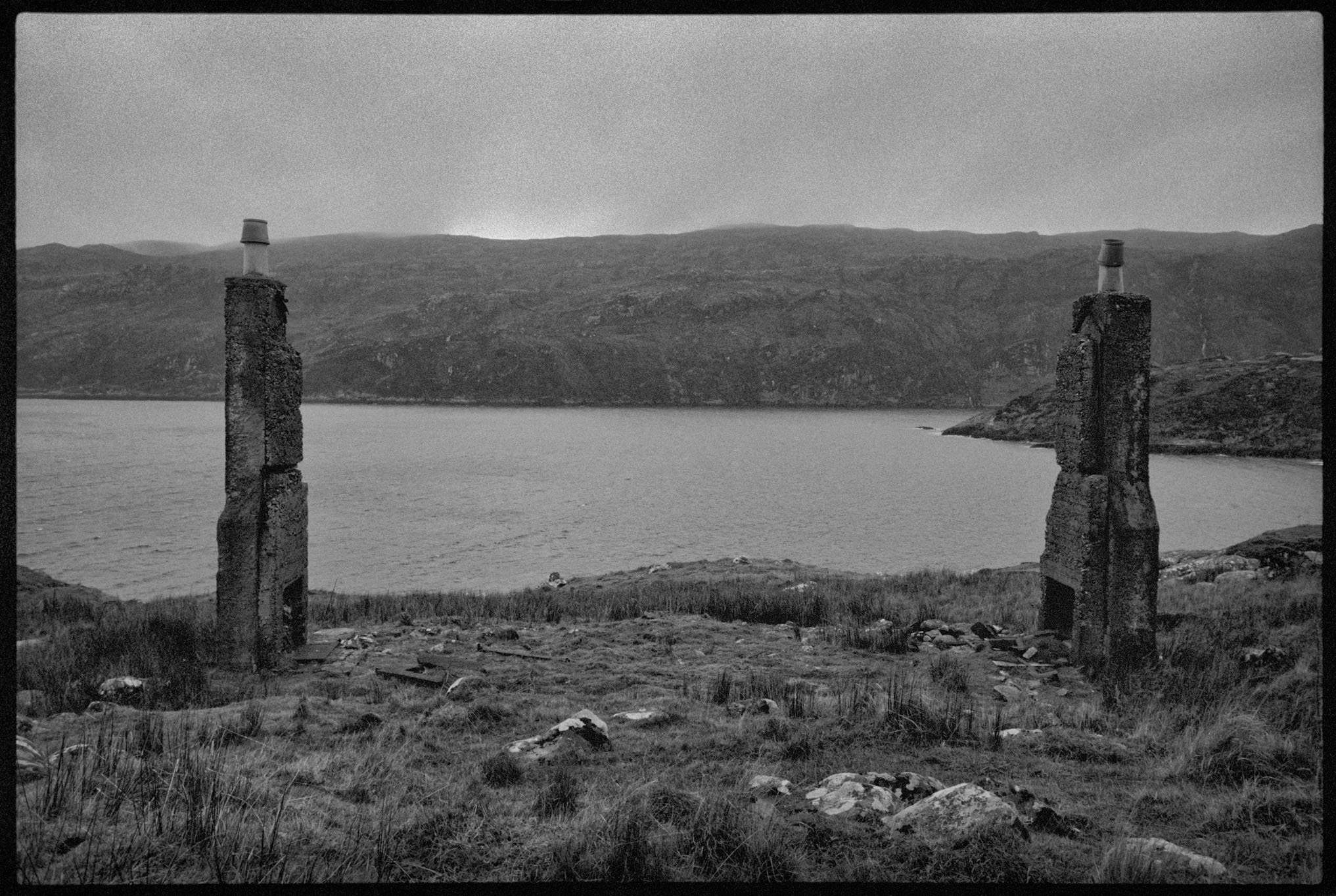The landscape of Harris and Lewis is dotted with chimneys, the ruins of houses whose inhabitants were evicted in the “Highland Clearances” of the 19th century or who were forced to leave their homes because of poverty.