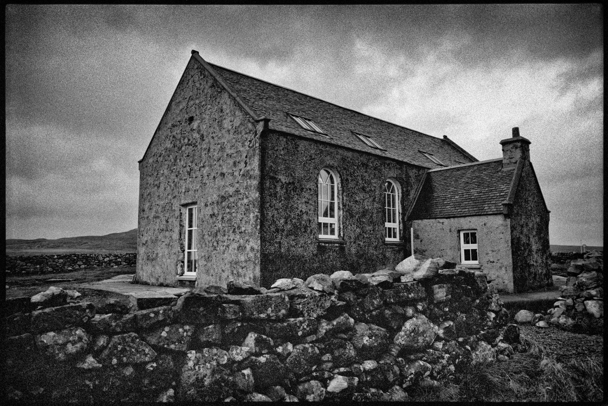 Baile na Cille Church in the district of Uig, West Lewis. The church was built in 1829 for the minister of the Church of Scotland. Local people tell, that many smallholders were evicted and their land given to the minister. The Church of Scotland was part of the establishment in those years.