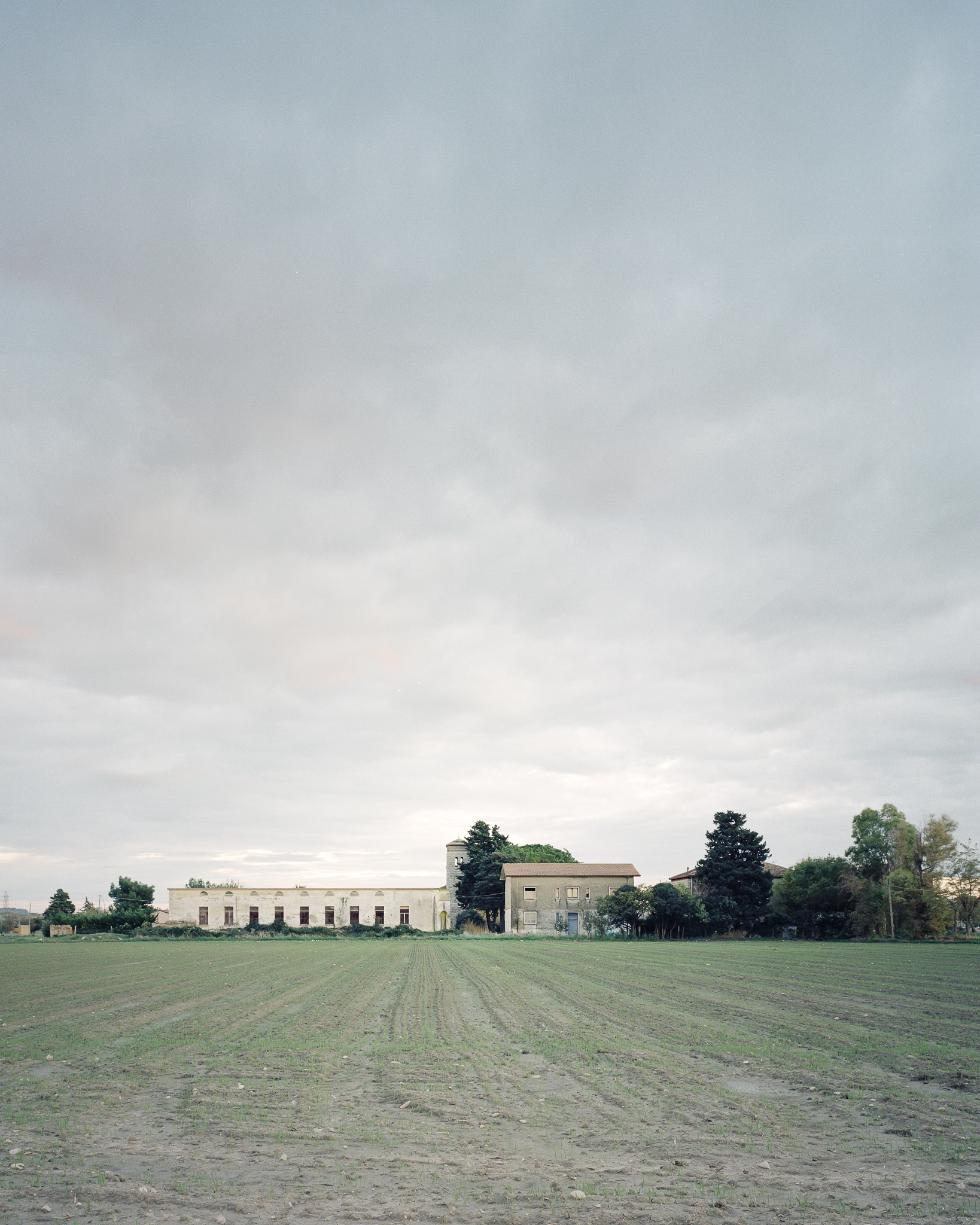 The goal is to seek new ways to observe, describe, and reinterpret these places, to offer them the light of a new narrative. The result of a morphological, spatial, and landscape analysis of the villages in relation to their territorial layout, the project views the villages not as autonomous episodes but as nodes of a territorial vision that today manifests itself through fragments, traces, and imprints. This is why the proposed photographic project takes distance, emptiness, and estrangement as interpretative keys to the relationship between architecture and landscape. Photographed under opaque skies, in the soft light of dawn or dusk, the remains of the villages appear like monasteries in the deserted plain, expressing both the elementary nature of their construction—deeply rooted in the rural attitude of this province—and the sophisticated composition of their whole: systems of squares, courtyards, and courtyards, connections that articulate orientations, views, and glimpses expertly projected onto the surrounding landscape.