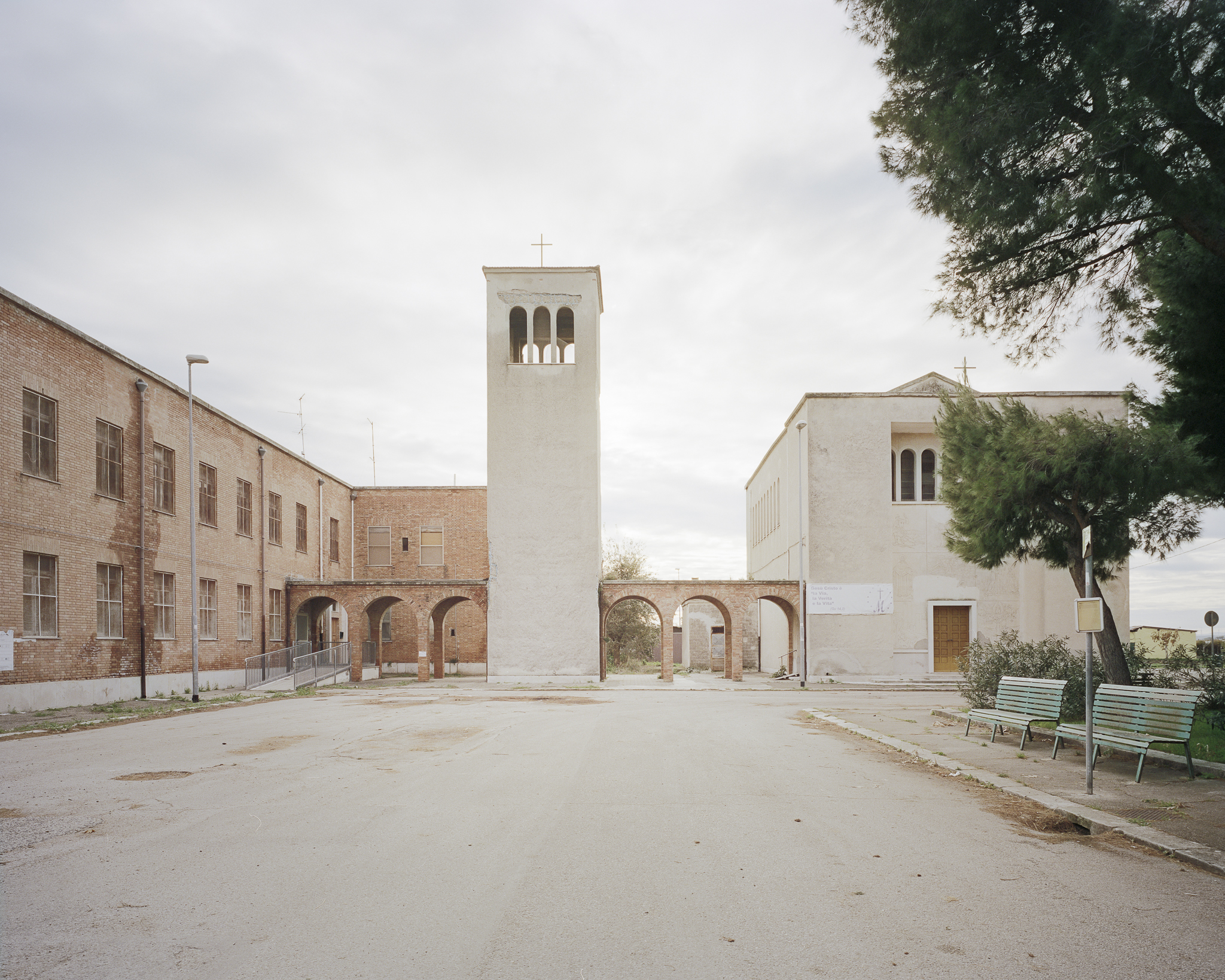 Built between the 1930s and 1940s, often left unfinished and largely uninhabited since the 1980s, these villages represent a broken vision, embodying a territorial vision that, begun with the land reclamation and land transfer entrusted to the ONC in 1938 and then gradually abandoned, organized a unified yet complex system of farms, services, infrastructure, and settlements. Today, these appear as urban forms and spaces alienated from the countryside: Italian squares become the backdrop to an act without actors.