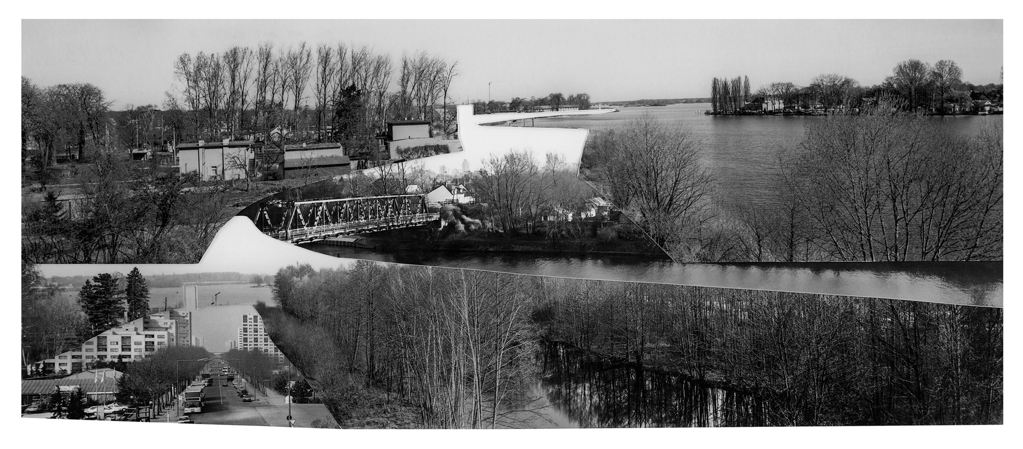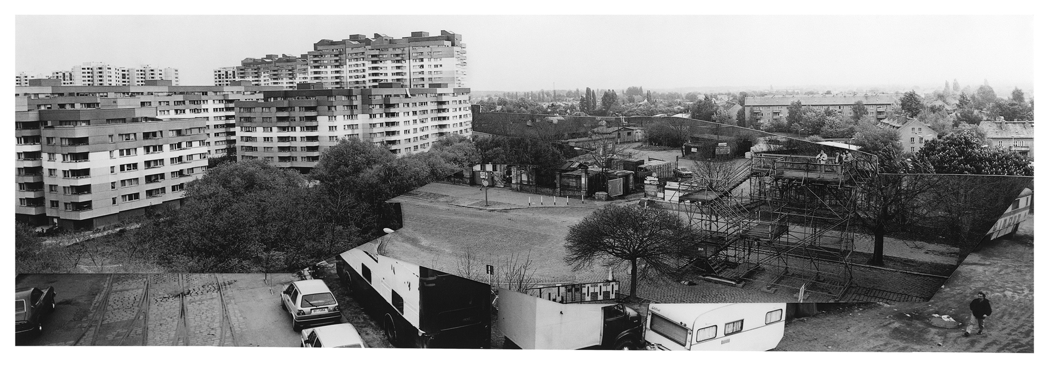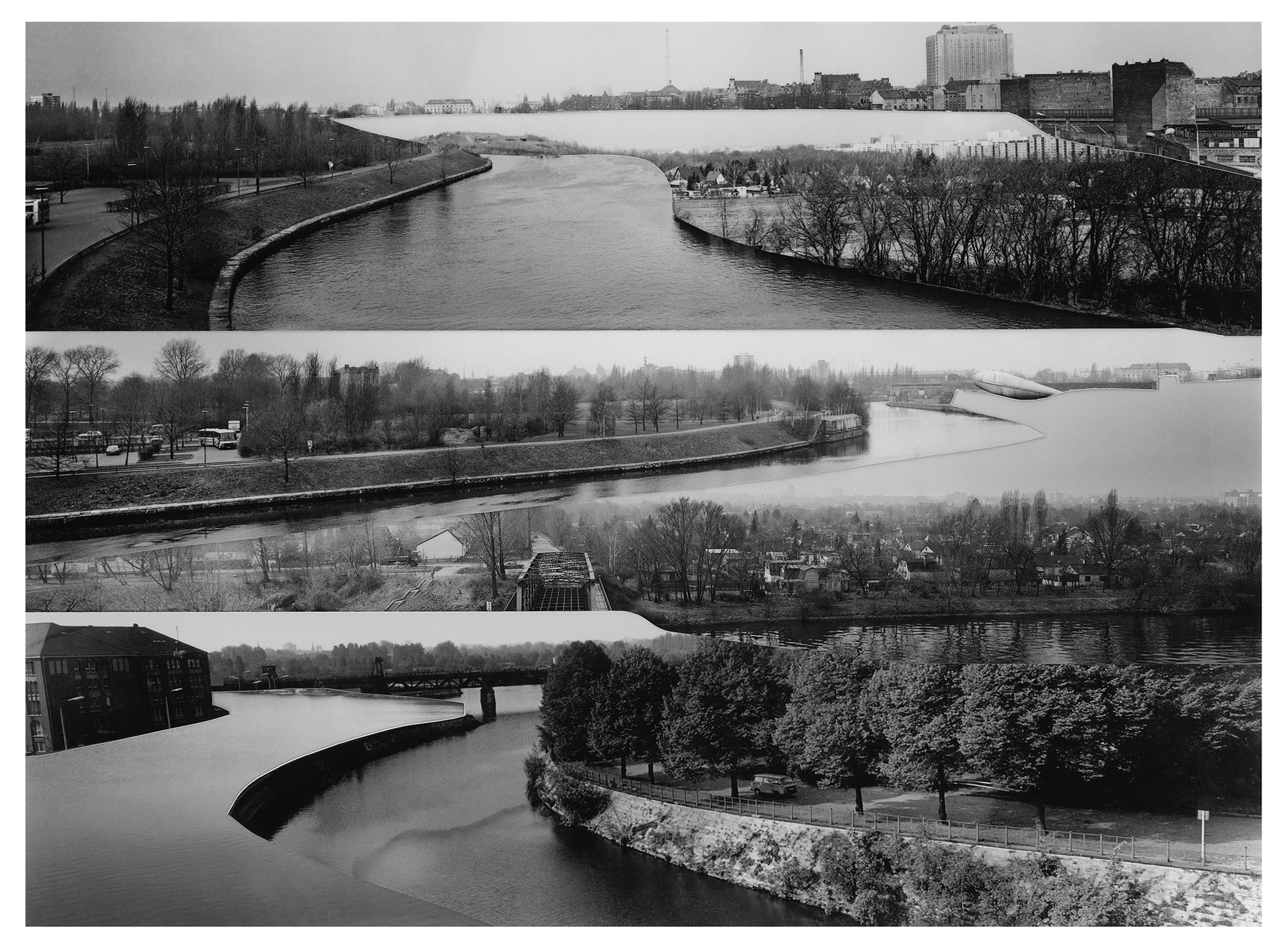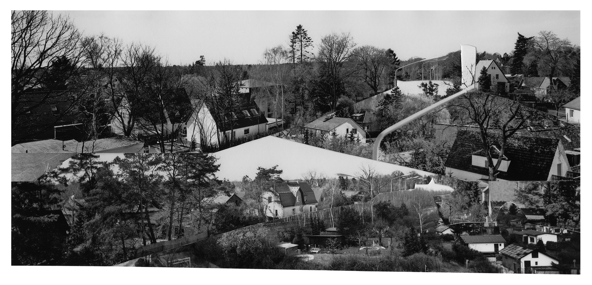 In 2022, I conducted in-depth research at the Stasi Records Archive during my artist residency at Künstlerhaus Bethanien in Berlin. Since East German citizens were not permitted to photograph the Berlin Wall, the only images from the East German side were those taken by the Stasi, short for The Ministry for State Security - the intelligence service and secret police. Among thousands of Stasi images, I discovered 134 panoramic photos of the Berlin Wall that an archivist scanned for me. After printing, I cut out the Berlin Wall and the Death Strip and assembled the pieces to create new, utopian landscapes of Berlin without the Berlin Wall. I set up the rule that I had to use each of the 134 cut-out pieces in one of the 23 collages. The collages are included in my recent monograph, The Absence and Presence of the Berlin Wall / Die Ab- und Anwesenheit der Berliner Mauer, which was published by DISTANZ in English and German editions in August 2025. The book spans 350 pages, includes 209 images, and engages with questions of national identity and borders, exploring the current state of German reunification.