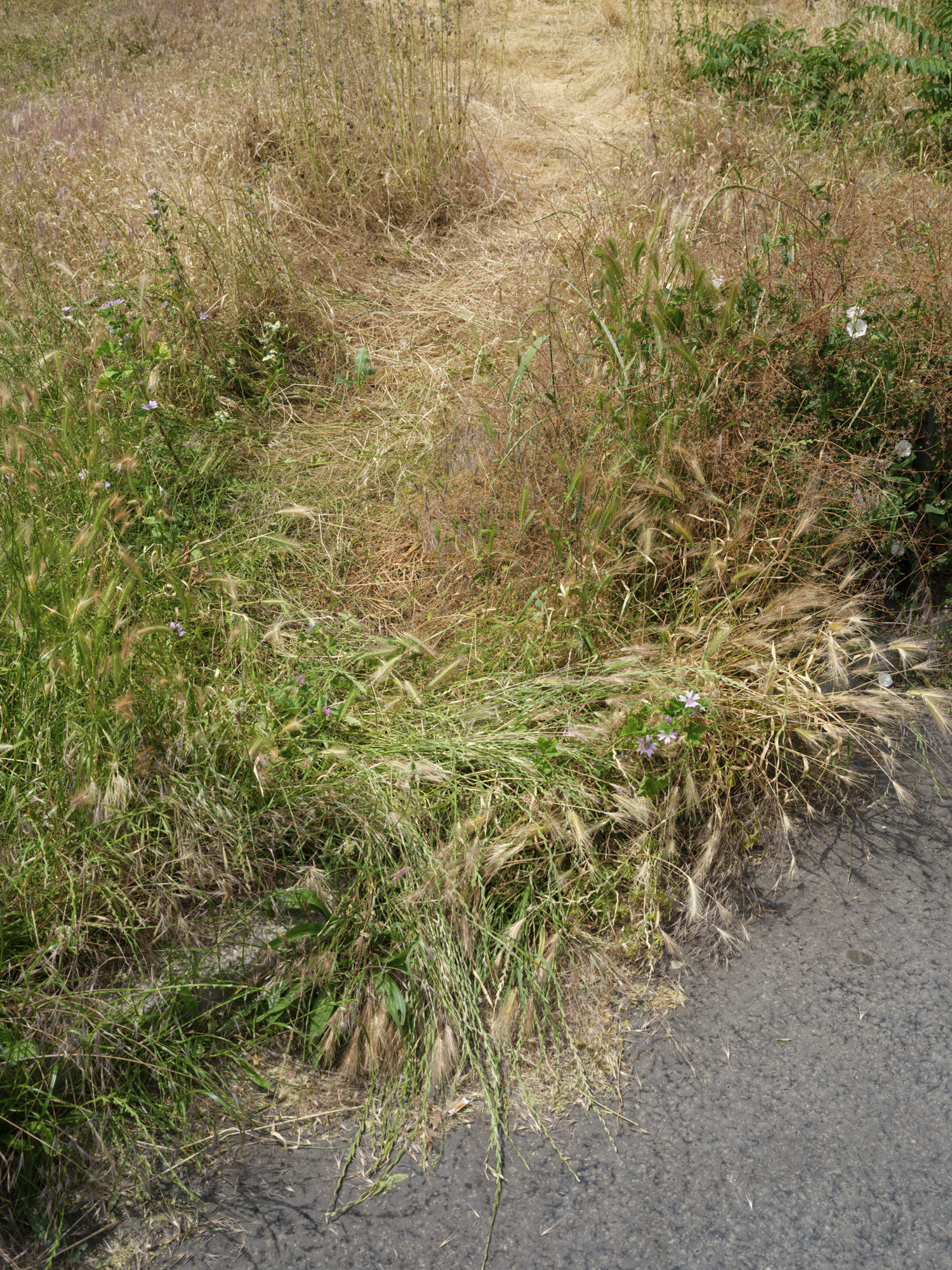 The majority of the photographs from Over Crest show the ground or elements on the surface, an exhaustive look into what was walked through during the project. Materials, textures, patterns, bumps and some worn out details are visible throughout the photographs. The project comprises nearly 200 photographs.