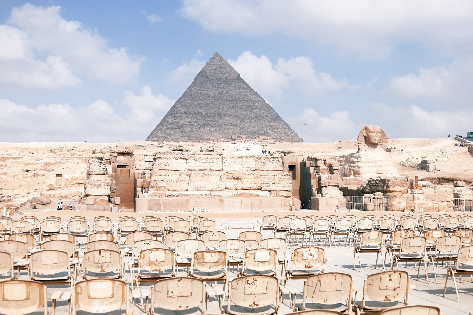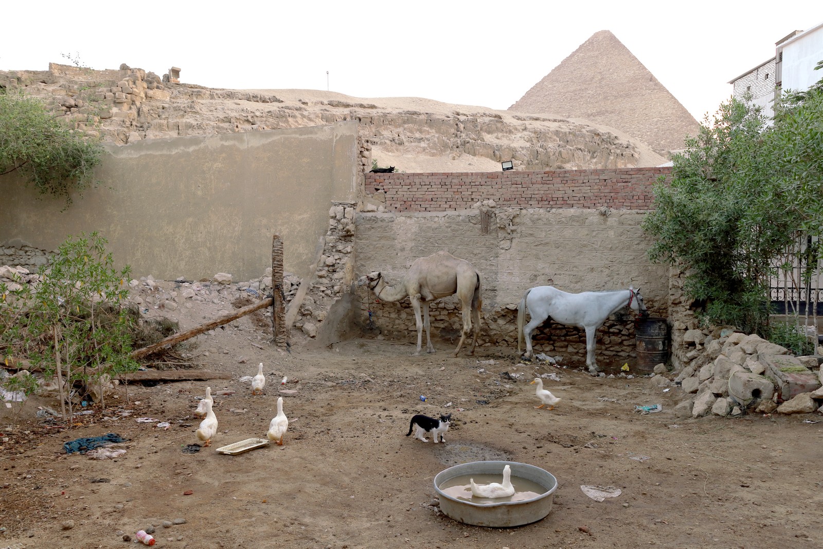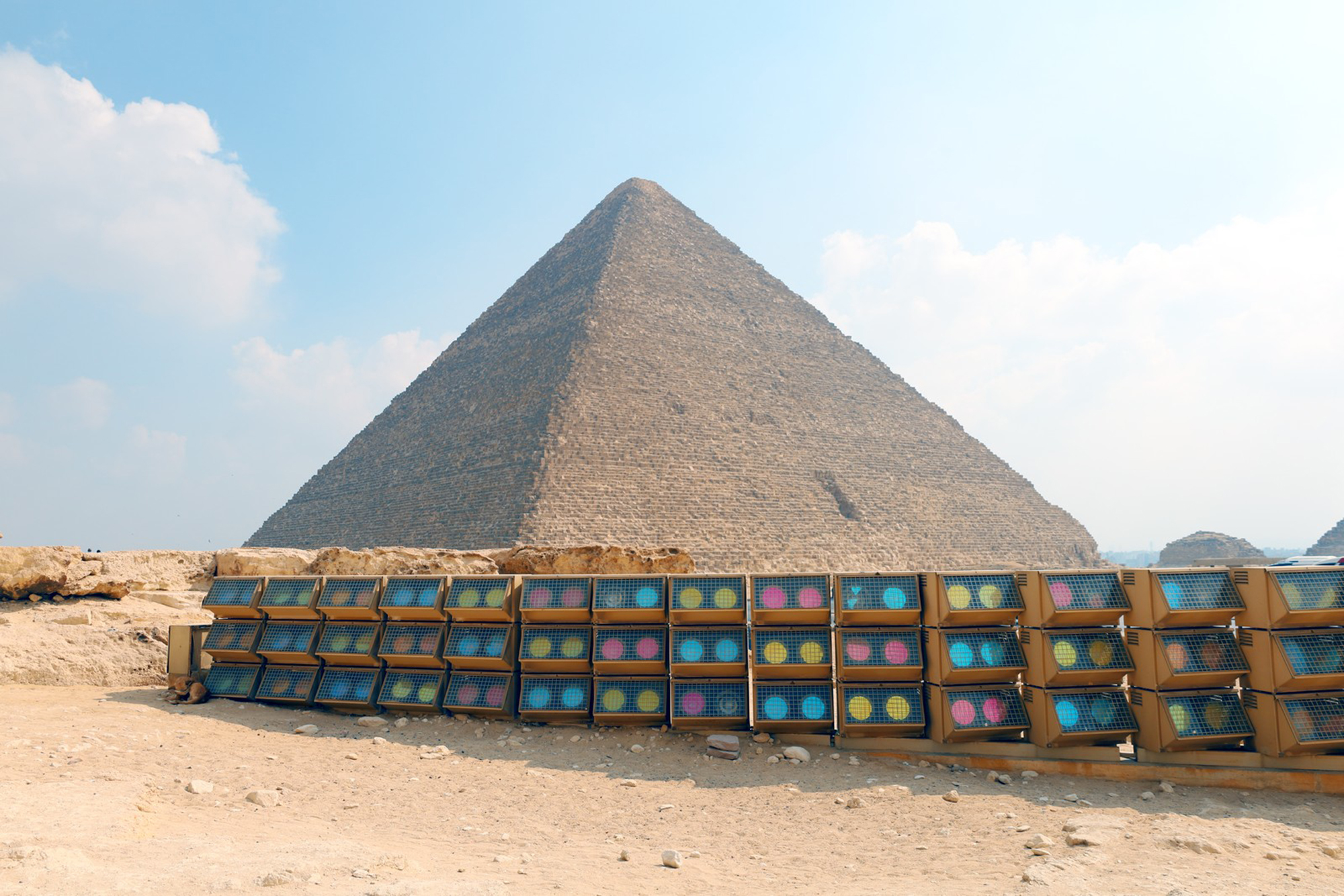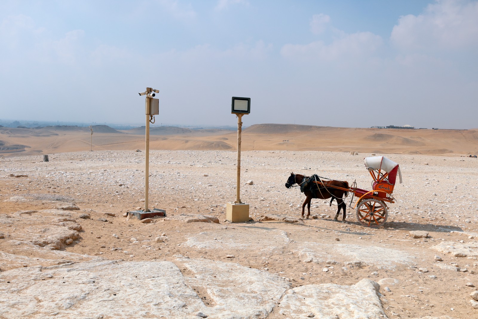 Raccontare un luogo come Giza rappresenta sempre una sfida per un autore: la sua immagine è saturata dall’immaginario turistico, da cartoline e rappresentazioni stereotipate che rischiano di appiattirne la complessità. Inserire il contemporaneo davanti alle piramidi diventa allora un modo per forzare lo sguardo, liberarlo dall’ovvietà del monumento e restituire un rapporto più critico e consapevole con il paesaggio.