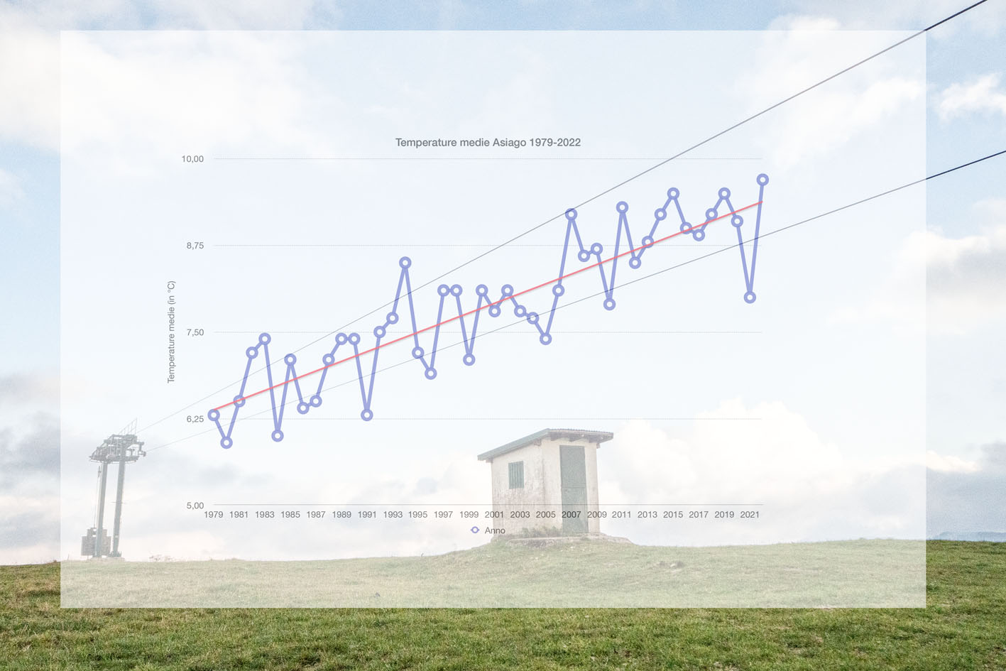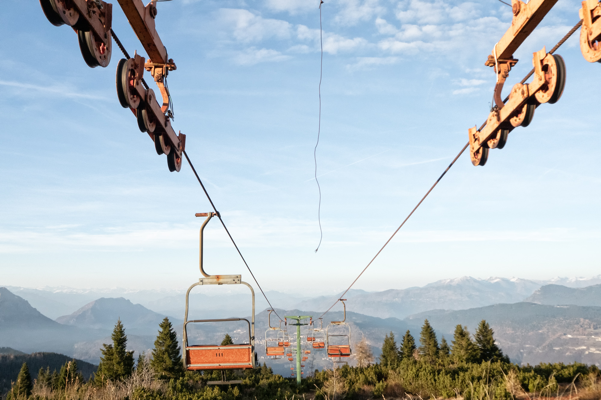 minimum period of use of the same even at higher altitudes.For me, the history of these facilities is inextricably linked to my skiing experience and to my family: it is on these slopes that my father taught me to ski, and on these slopes I spent numerous Sundays with my family. In the pre-Alps of the province of Vicenza the situation created due to climate change is particularly felt, given that the maximum altitudes of the mountains on which the ski facilities were built in past years are all lower than 2000 m. In fact, on the Altopiano dei Sette Comuni alone there are about ten disused and abandoned facilities compared to 4 small-scale plants still active. The removal of abandoned plants is not easy and often the infrastructures remain for decades in the middle of meadows and woods.