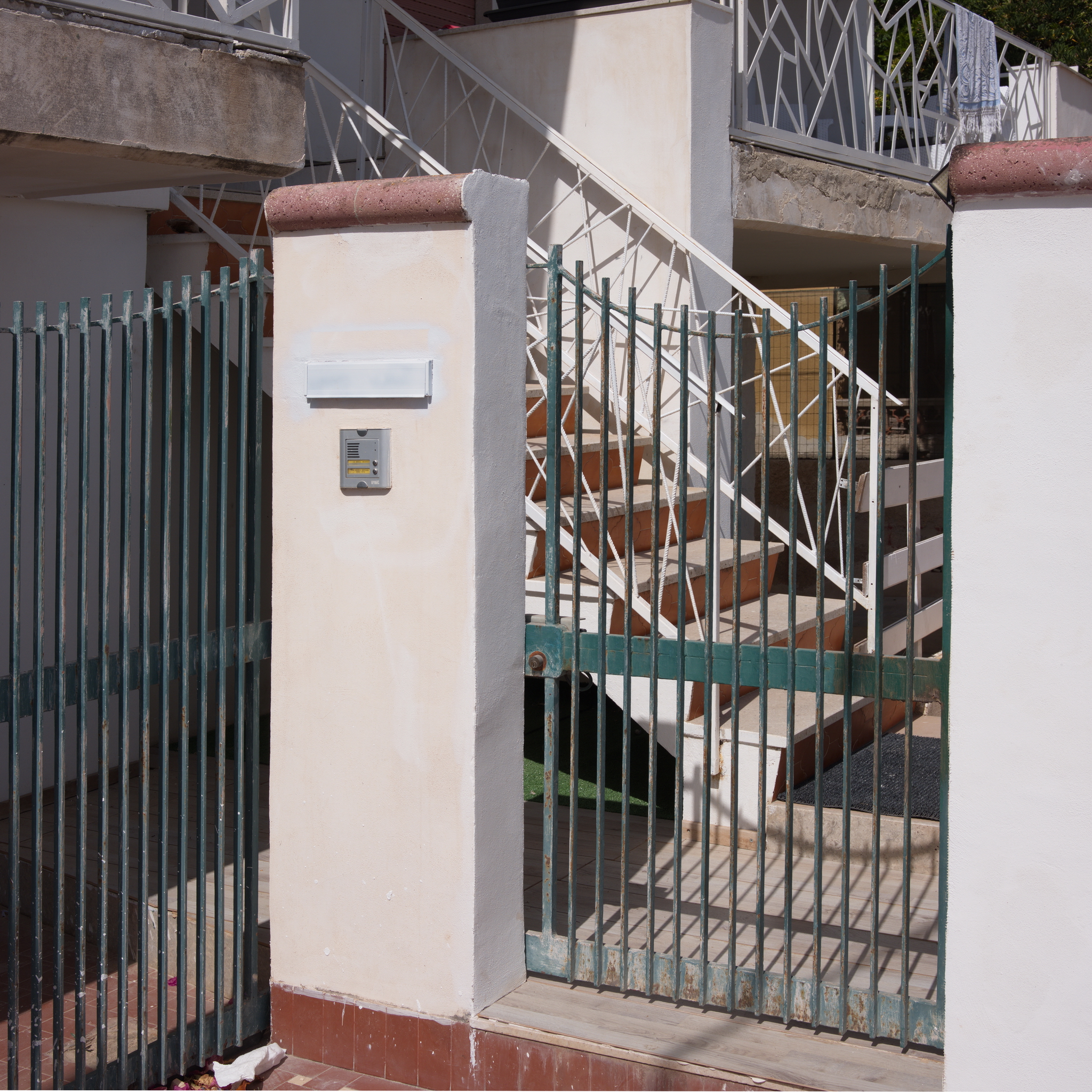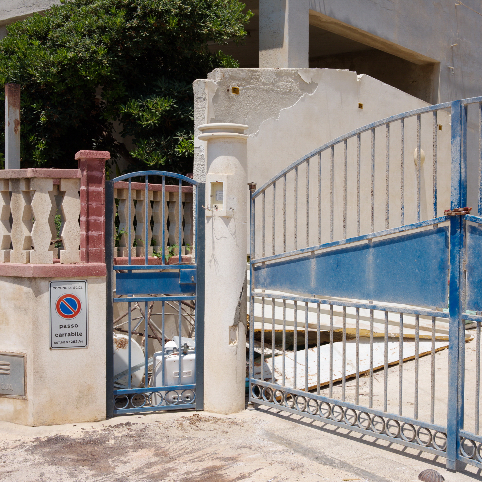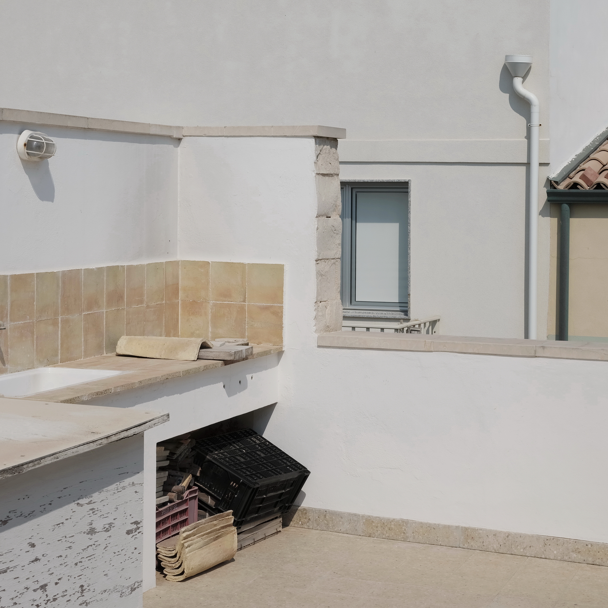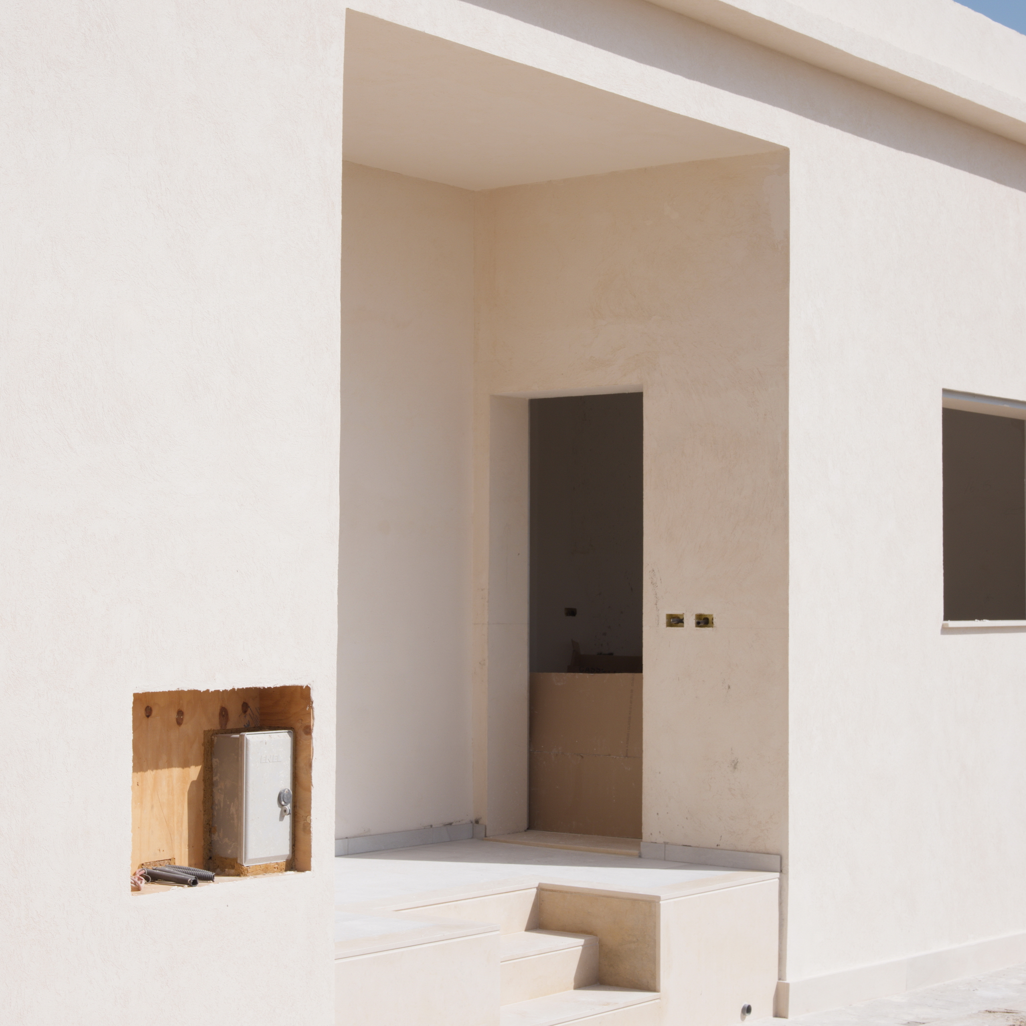 Here, space is not landscape, but a restrained gesture: a threshold that divides the light, a gateway that leads nowhere, a closure that preserves the memory of a passage. It is Sicily, or any lateral place where things happen without being declared.