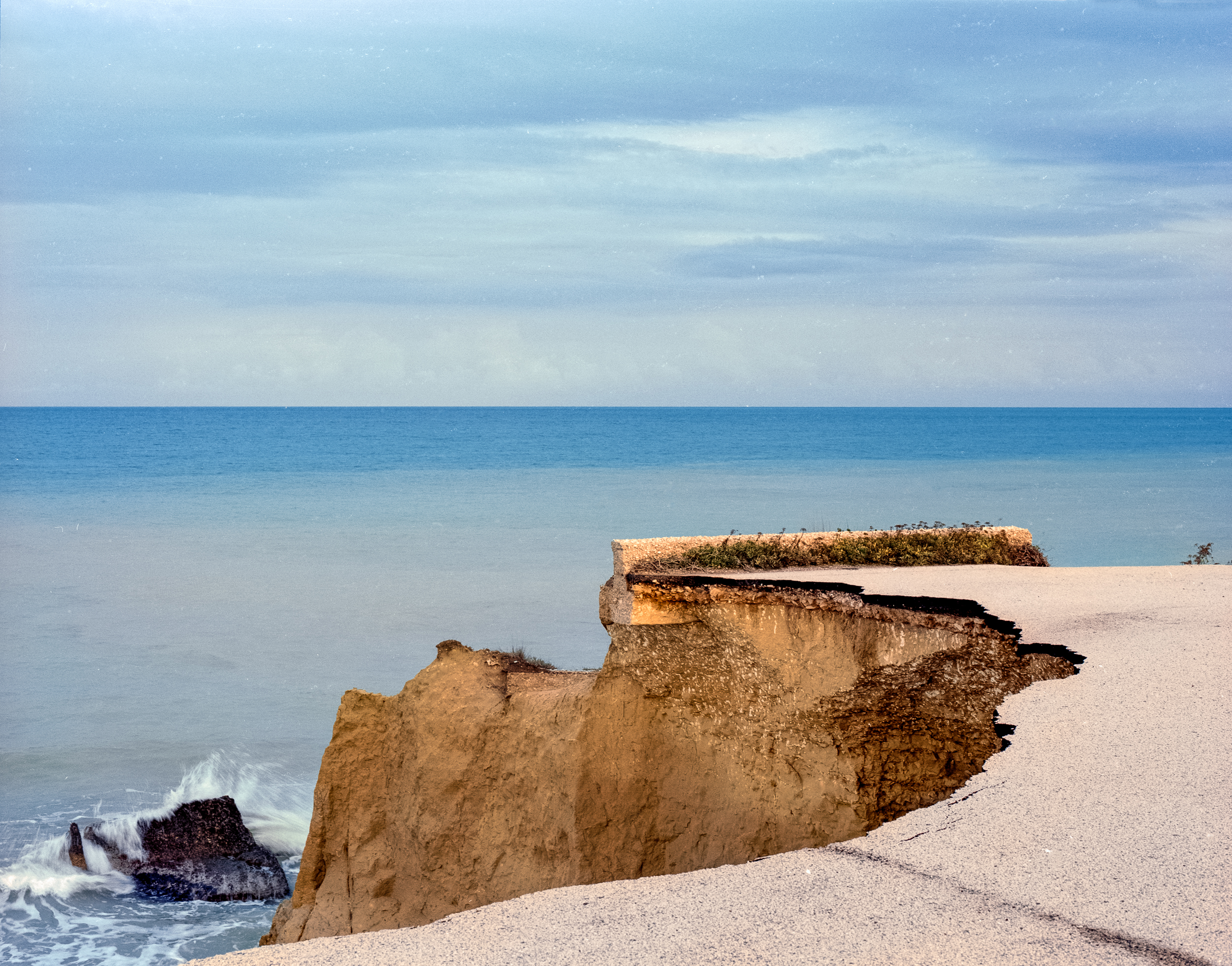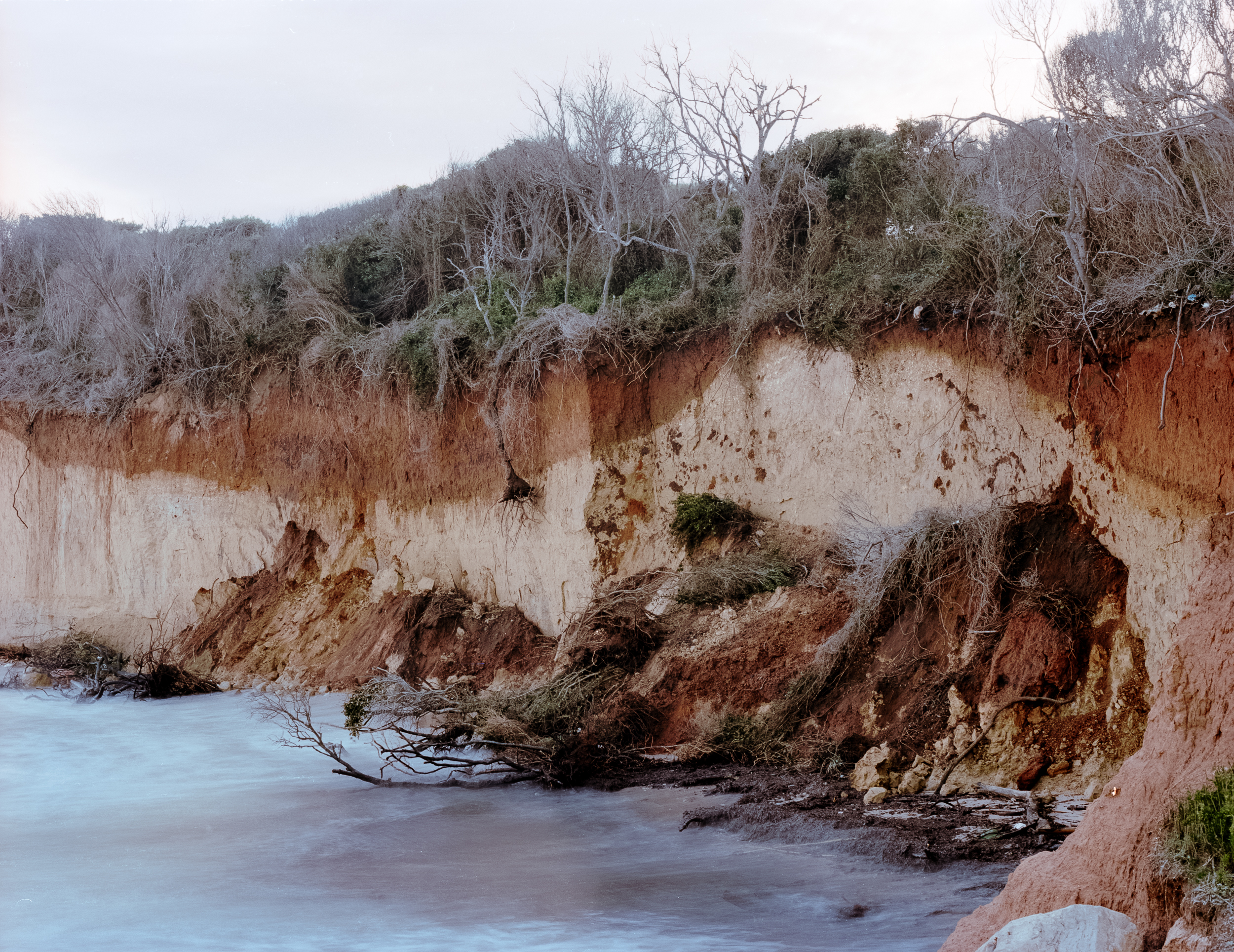 Sopravvivono alle Spiagge is a long-term photographic project that began in 2022 and is still in progress. Developed through an ongoing field practice entirely based on medium format analog film, the project investigates the slow transformation and erosion of the Salento coastline in southern Italy, between Brindisi and Santa Maria di Leuca. Rather than responding to spectacular or media-driven events, this work is rooted in duration, repetition, and proximity. Coastal erosion here is not approached as an emergency to be documented, but as a temporal process: gradual, layered, often imperceptible, and revealed most clearly through loss. The photographs describe the shoreline as a fragile threshold — a space where geological time, human intervention, and everyday life intersect, erode, and continuously reshape one another. This selection of fifteen images represents only a small fragment of a much larger body of work developed over several years, involving more than 150 rolls of color negative medium format film and large-format plates. The project unfolds through a sustained return to the same places, observing how landscapes subtly change while remaining inhabited, crossed, used, and remembered. Alongside the contemporary photographic production, Sopravvivono alle Spiagge is conceived as an evolving visual and affective archive. The research integrates vernacular materials — private photographs, postcards, documents, and personal memories — donated by local inhabitants who have witnessed the disappearance or transformation of places once central to their lives. These materials function not as illustrations, but as devices of temporal comparison and emotional transmission, allowing the present landscape to be read through layers of memory and absence. Although erosion has recently become a topic of public debate and media attention, the origin of this project is deeply biographical. It stems from the artist’s personal return to the coastal landscapes of his youth — places where formative experiences, friendships, and early encounters once took place. Coming back to these shores years later and finding them altered, fragmented, or partially erased, photography becomes a way to reconnect different temporal versions of the self: the adult observer and the adolescent who once inhabited these spaces when time felt expansive, relationships absolute, and the world small yet total. In this sense, the project is not only about the disappearance of beaches, but about the erosion of personal geographies, emotional maps, and intimate territories. The images attempt to hold together what is physically vanishing and what survives in memory, proposing photography as a fragile tool to preserve continuity where the landscape no longer guarantees it. Sopravvivono alle Spiagge is an open-ended archive and a collective invitation: to recognize that when places disappear, it is not only land that is lost, but entire ways of being in the world. To photograph the coast, here, means to resist the disappearance of lived time — and to try, together, to survive the beaches that did not survive us.