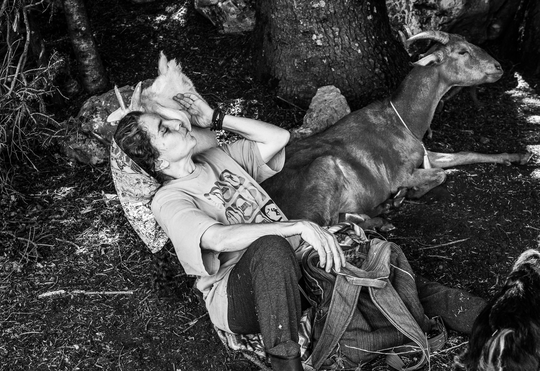 A rough mountain region in Greece. The locals, living with their own rules of community, surviving with an inalienable nature, some of them never having left, some returning from the alienated life of the cities. And we from the cities, with our roots in the life of the countryside, from which we are both trying to escape and to hold on to its values. Dis-rootedness and a return to our future. The non-humans, the secrets of the mountain landscape itself, the animal farm, the hard work, the tenderness, the communication of men and of women, and their playful setting-of-borders. The in-between, the unknown, the fear, the learning, the tenderness, the safety which the small community provides - however temporary. The feeling of belonging that is rooted in the deepest layers of the human being and that pulls us towards each other until our "foreignness" separates us again.