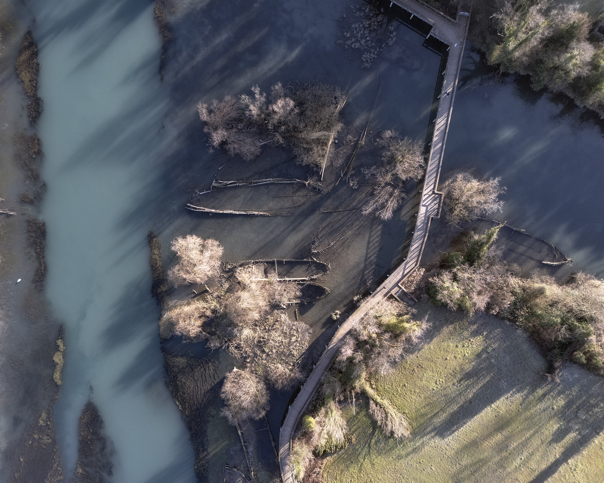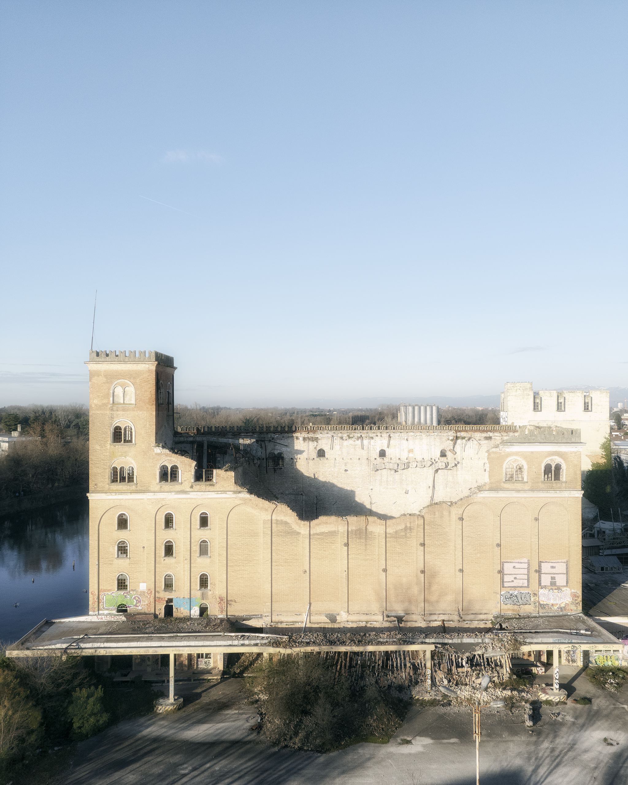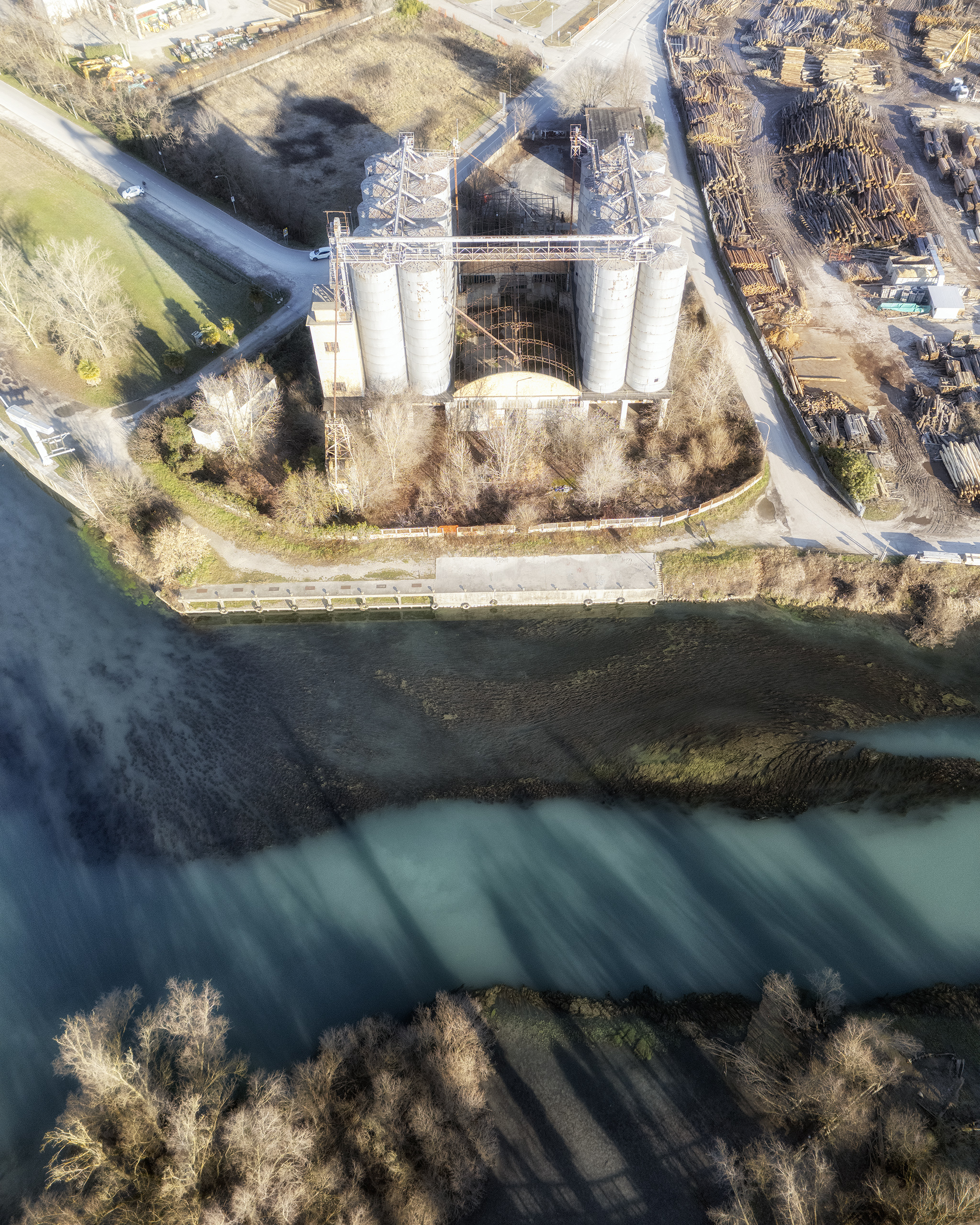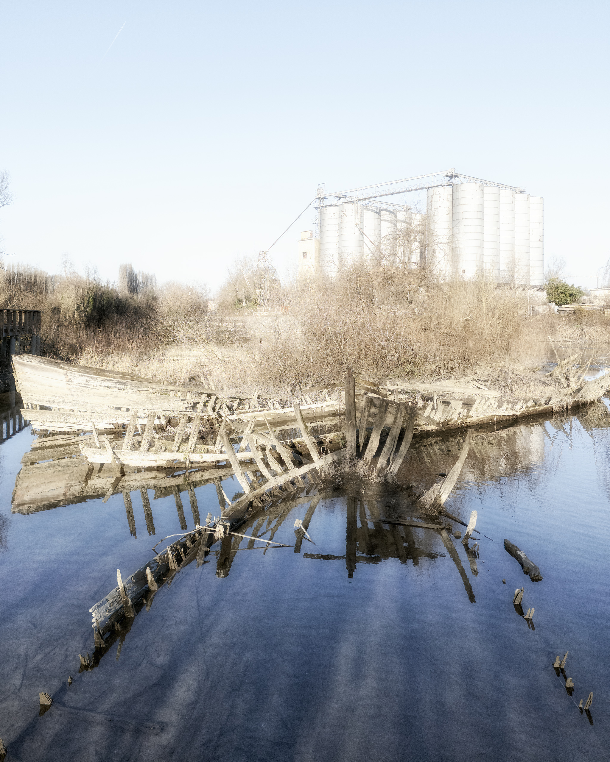 Abandoned in the 1970s following the crisis triggered by the colza oil scandal and the growing dominance of road transport, these boats are now silent relics, absorbed by vegetation and water. Their slow decay tells the story of the end of a productive system and of a working culture tied to the river, gradually replaced by new industrial and infrastructural logics.