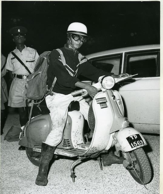 Mohamed Amin and the scooter with which he launched his photographic career when he was a 13-year-old schoolboy and won accreditation as a Press Photographer covering the grueling East African Safari Rally