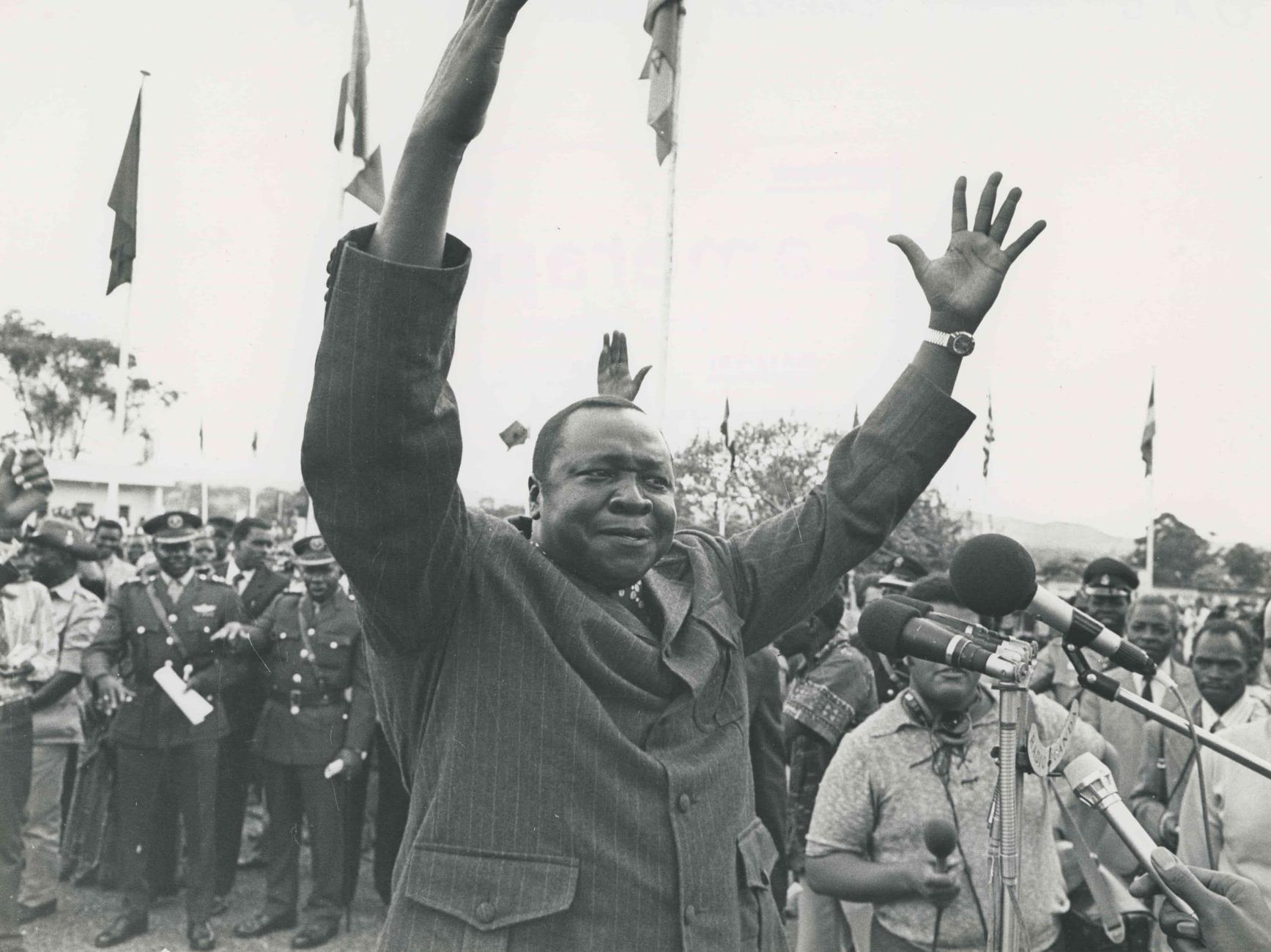 President of Uganda, Idi Amin Dada during an Organization of. African Unity Summit in Kampala. 1975