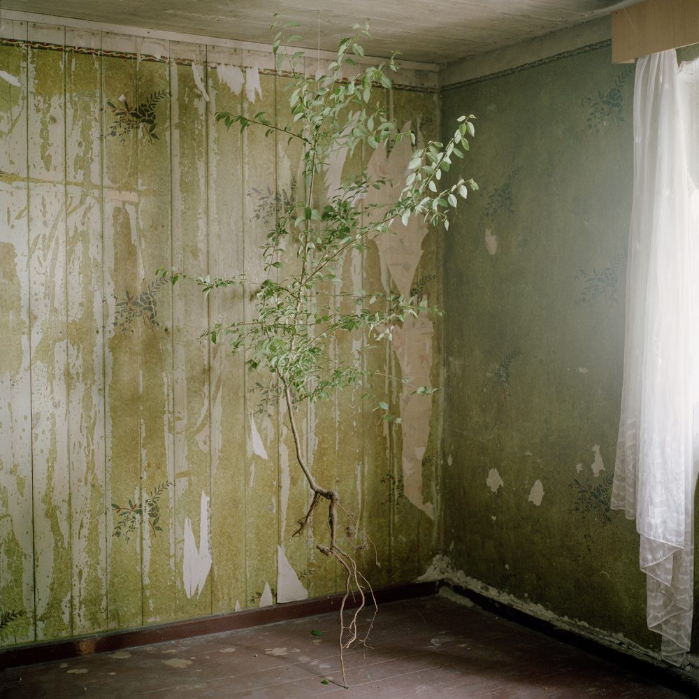 One other important moment is the day I took the photograph L’arbre of the series When water comes together with other water and reflects this development. I was uprooting a tree when I had the idea to hang it in the green room with the leaf drawings on the walls. It was like a first step to the process of installation. I add this citation by Abbas Kiarostami in my head: «When you take a tree that is rooted in the ground and transfer it from one place to another, the tree will no longer bear fruit. And if it does, the fruit will not be as good as it was in its original place.» Landscapes of the mind [archive], Guardian Unlimited, 2005/ Wikipedia