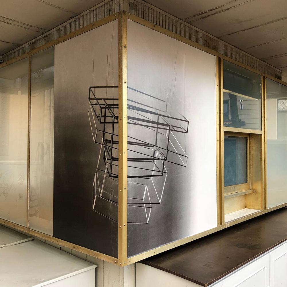- For a second installation I used the windows found on site. The splitting and shattering reflected the idea of ambivalent and double identity.