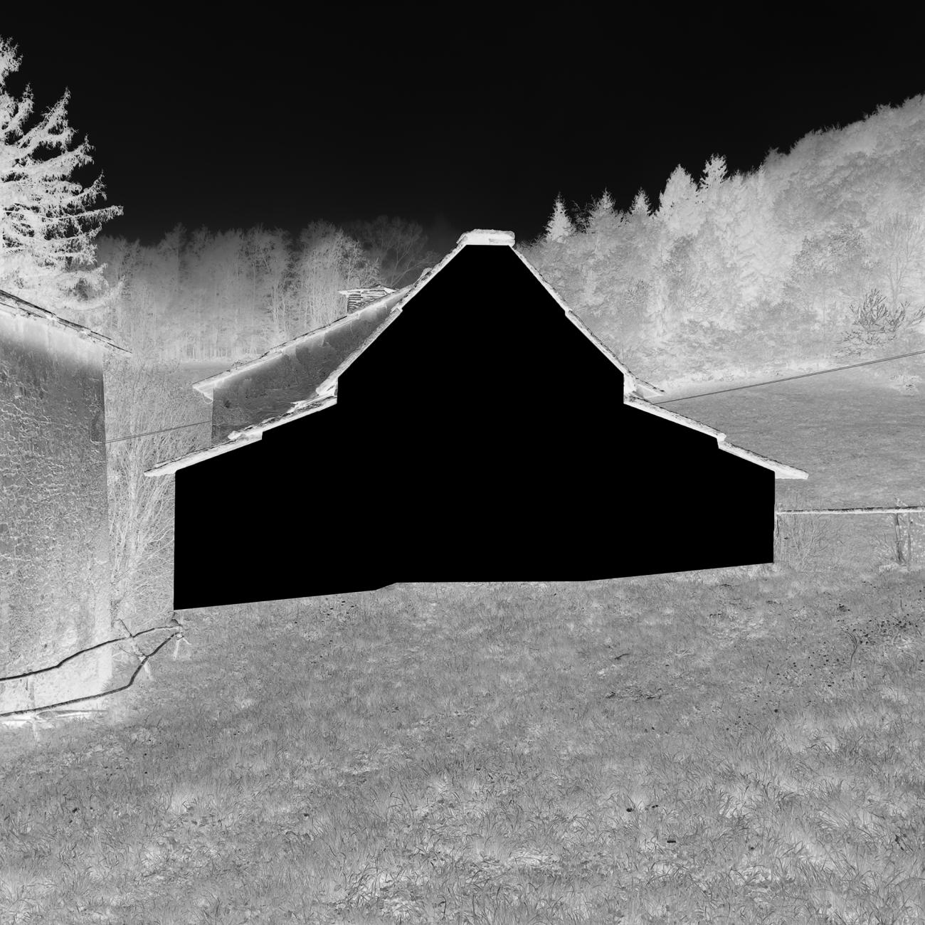 - The first was in consequence of discovering a place: the jumble of sheds, huts for a construction site, of which the structure cut in two reflected the division of identity to me. This place had a very strange atmosphere, the jumble, the fog... I went back several times and started duplicating the shape in different situations.