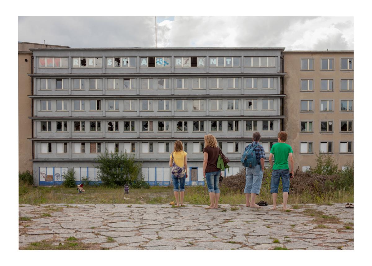 EM: The Paradise on Earth series came out of my Leisure Time series and the diptych Riss came out of the Paradise on Earth series. The photographs in the Paradise on Earth series are all taken in Ruegen island in Germany. Ruegen attracted me photographically as the romantic topos par excellence. It was the favorite place of German intellectuals, religious men and Romantic painters like Caspar David Friedrich and Phillip Otto Runge, who have painted here iconic Romantic landscapes. However, the reason I visited Ruegen for the first time in 2009 was to photograph for my Leisure Time series the so-called “Colossus of Prora” the 4,5 km long modernistic building that stretches along the Prora bay. It was conceived by the Nazi “Kraft durch Freude” (Strength through Joy) organization for mass vacation by the sea - originally planned to accommodate 20000 Aryan vacationers. At the time I started this project in 2009 the fate of the "Colossus of Rügen," seemed uncertain as politicians, investors, historians and scientists had different views and interests. Today however, the various parts of the building offer sublime modernistic ruins, a Documentation Center, a dance club, a privately owned cheap phantasmagoric museum, a café-restaurant and most recently four of the remaining blocks (500m long each) were transformed into luxury apartments - hotel rooms. In Prora, history, aesthetics and politics are closely interwoven and this aspect interests me particularly. Furthermore, what I find of a particular aesthetic interest in Prora, is the juxtaposition of the visitors vulnerable bodies who come here to see the spectacle or to have a swim, against the brutality of this massive architectural Nazi artifact. Just like in Friedrich’s paintings the human figures that turn their back to us remind us that in this natural as well as historical spectacle we are only latecomers.