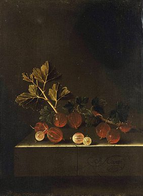 © Adriaen Coorte, ‘Gooseberries on a Table’, 1701