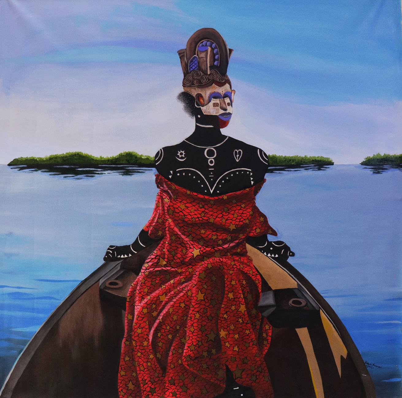 © Kelechi Nwaneri, Tourist at the Lagoon, 2021, Charcoal Sticks and Acrylic Paints on Canvas, cm 120 x 120