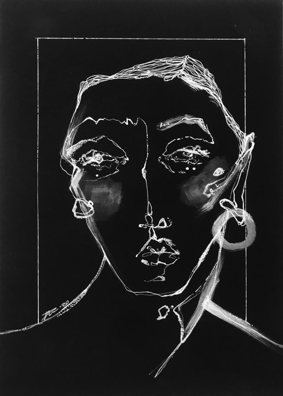 Patti Endo, The Withering Self, 2020, Medium- White ink on paper, cm 19.5 x 27