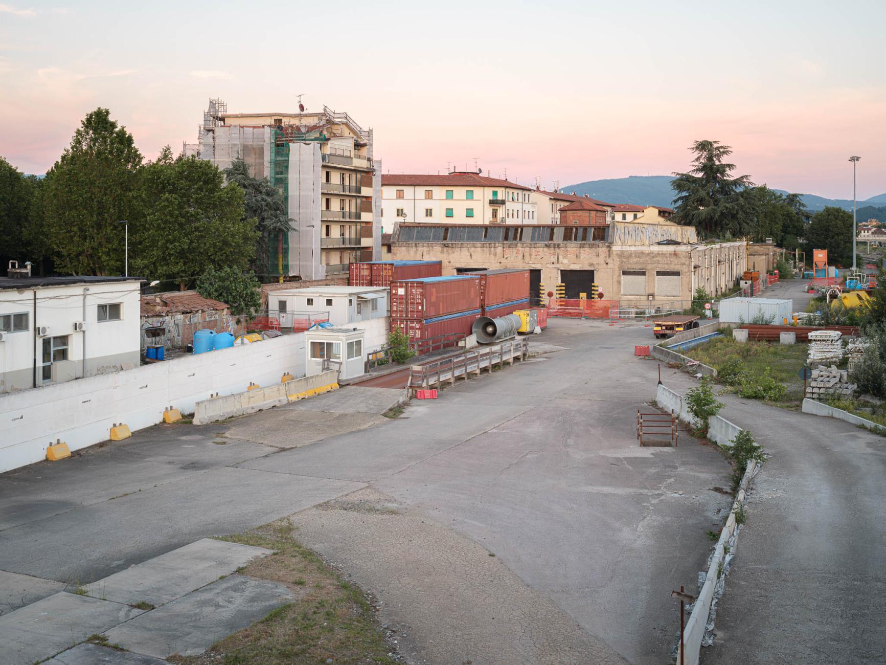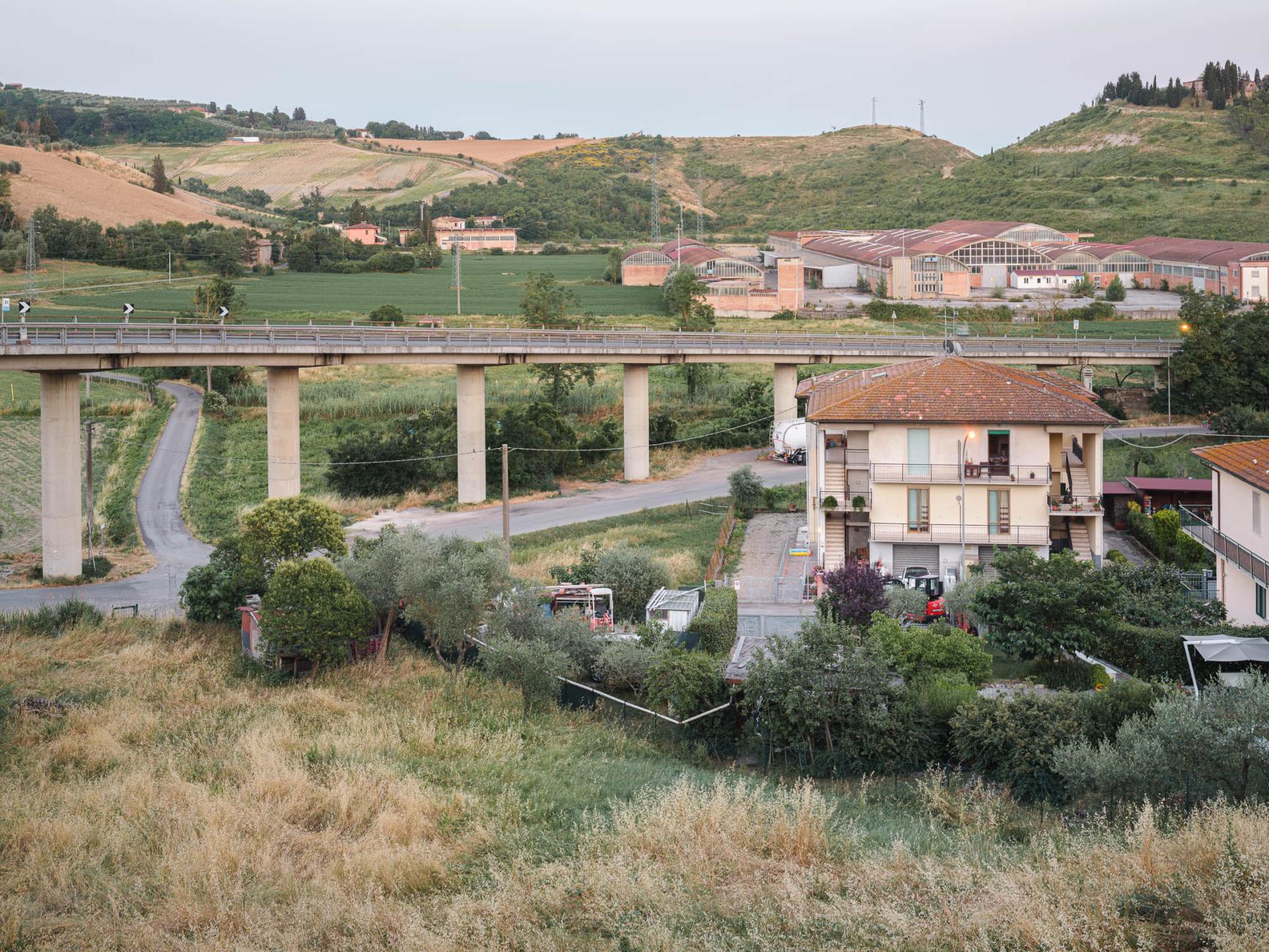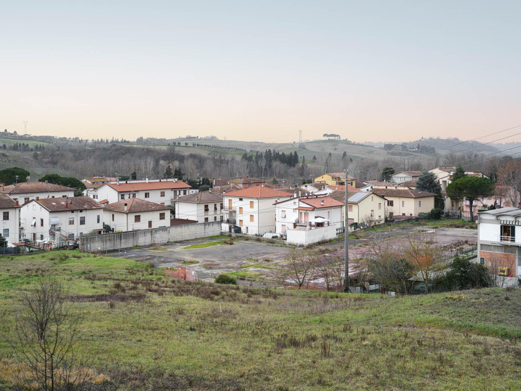 Lorenzo Valloriani (LV): “The Memory Of The Present” was born from the observation that the contemporary Tuscan landscape is an invisible reality because there is a tendency to favor an idyllic narration of this territory, ideally identified only by rolling hills and rows of cypresses. The project envisaged many small trips between 2019 and 2022 to document each of the ten provinces that make up the region for more than 50 places. Excluding the large historical centers and the majestic natural landscapes, I concentrated on the lands in between. Those of large non-museumized provinces; unidentifiable smaller towns, anonymous architecture; provincial roads; industrial warehouses; light poles, votive aedicules, embankments of torrents; blurred boundaries between city and countryside. It’s where the city no longer has a proper end and the countryside a true beginning. A sort of rurality extended to small towns and landscapes marked by industry. No photographer has set down a tripod in these places. Paraphrasing Henry Bergson, the memory of the present is also a form of inattention to the space that surrounds us, particularly our relationship with the everyday landscape that we cross every day.