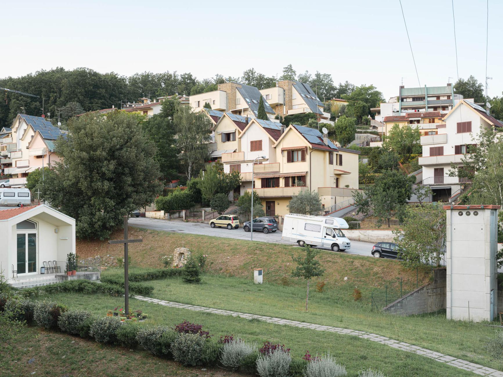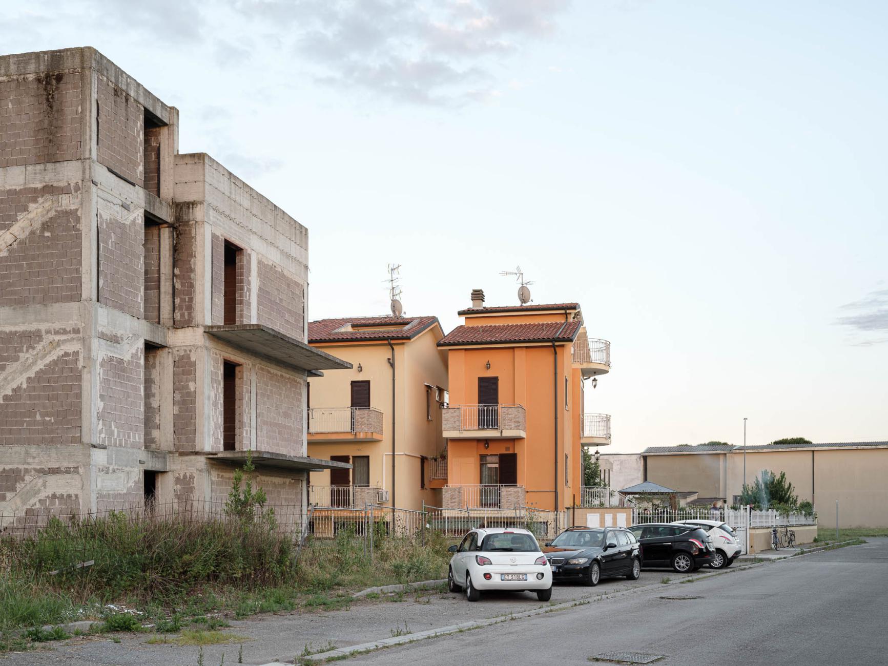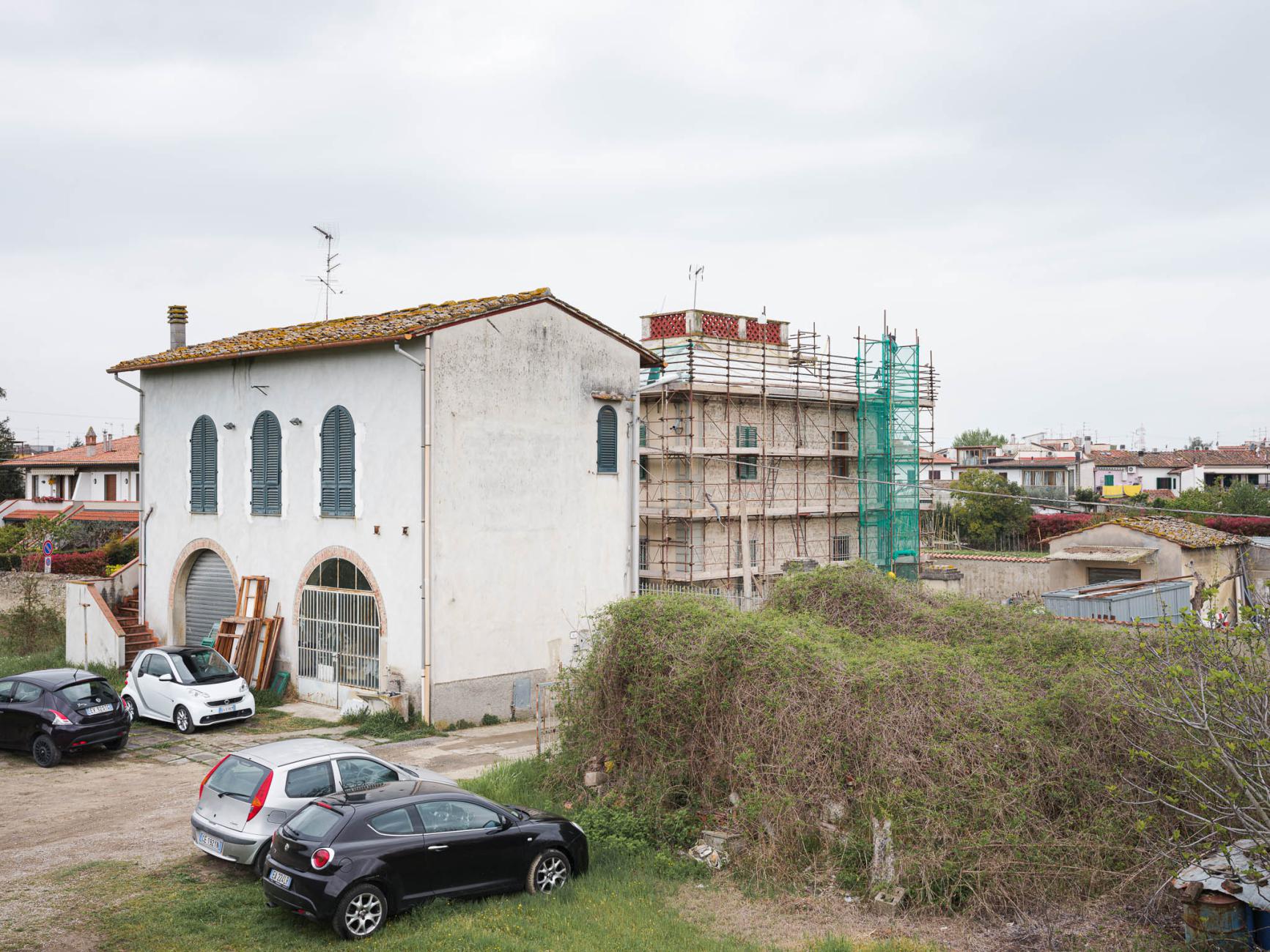 Lorenzo Valloriani (LV): “The Memory Of The Present” was born from the observation that the contemporary Tuscan landscape is an invisible reality because there is a tendency to favor an idyllic narration of this territory, ideally identified only by rolling hills and rows of cypresses. The project envisaged many small trips between 2019 and 2022 to document each of the ten provinces that make up the region for more than 50 places. Excluding the large historical centers and the majestic natural landscapes, I concentrated on the lands in between. Those of large non-museumized provinces; unidentifiable smaller towns, anonymous architecture; provincial roads; industrial warehouses; light poles, votive aedicules, embankments of torrents; blurred boundaries between city and countryside. It’s where the city no longer has a proper end and the countryside a true beginning. A sort of rurality extended to small towns and landscapes marked by industry. No photographer has set down a tripod in these places. Paraphrasing Henry Bergson, the memory of the present is also a form of inattention to the space that surrounds us, particularly our relationship with the everyday landscape that we cross every day.