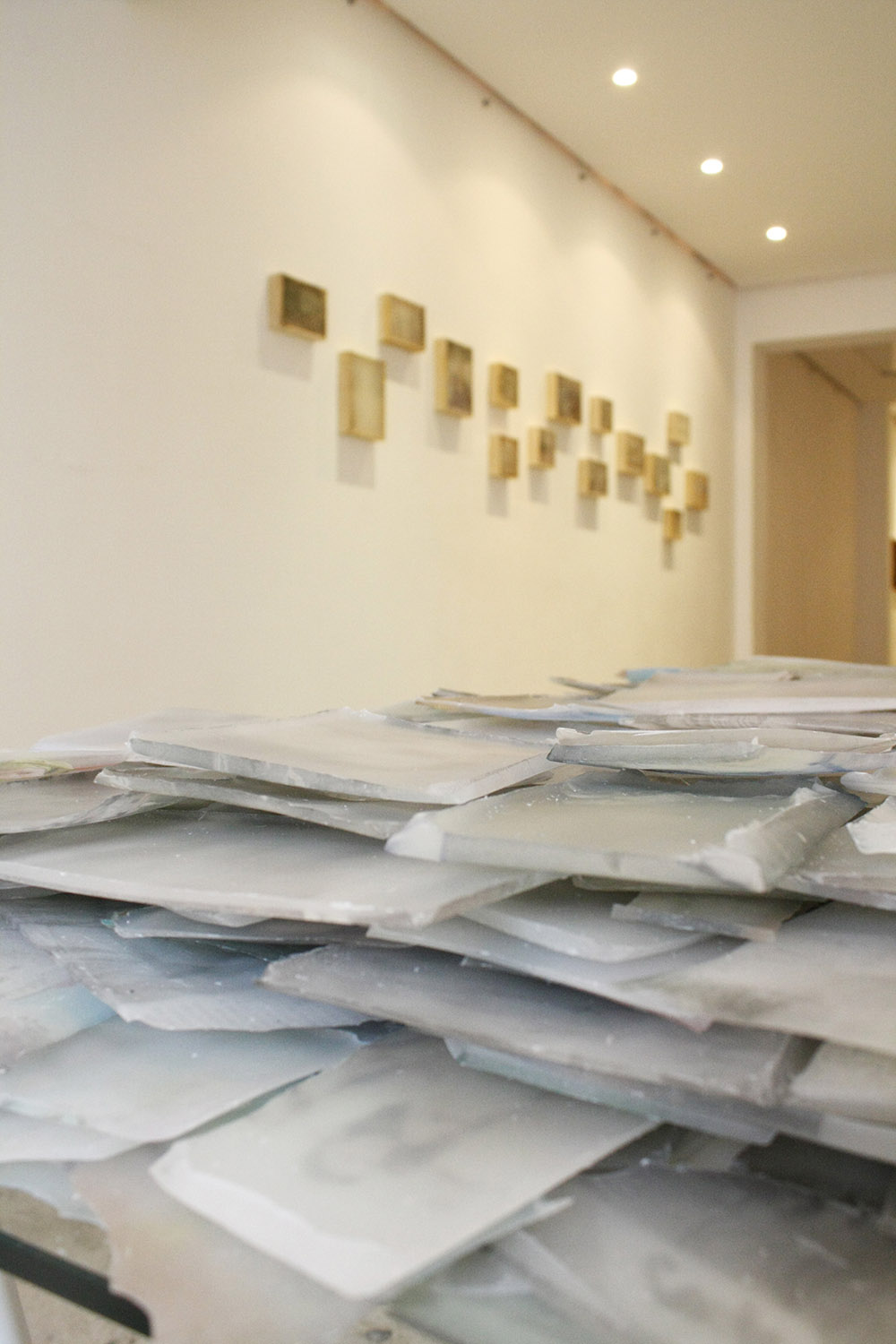 MG: I find it very curious to analyze the different results of the resources that we have available. Despite the scarcity of films, we still find a good variety in the market, and exploring the characteristics of each one of them brings better definitions to work. 'Cacos de Memória' arose from the investigation of other materials to support photography. My intention was to take the image of the paper, together with it's sharpness and context. Paraffin gave me all that. I explored the various forms of presentation as a way for the public to interact and manipulate a variety of images. A large album of portraits exposed on a table allowed images to be manipulated randomly while questioning how much memory we can maintain and what is important to us. Yet the use of paraffin force the visitors to handle the images carefully, slowing down the process of perception. This presentation was made during the "Memoriar" exhibition at AVA Gallery in 2012.