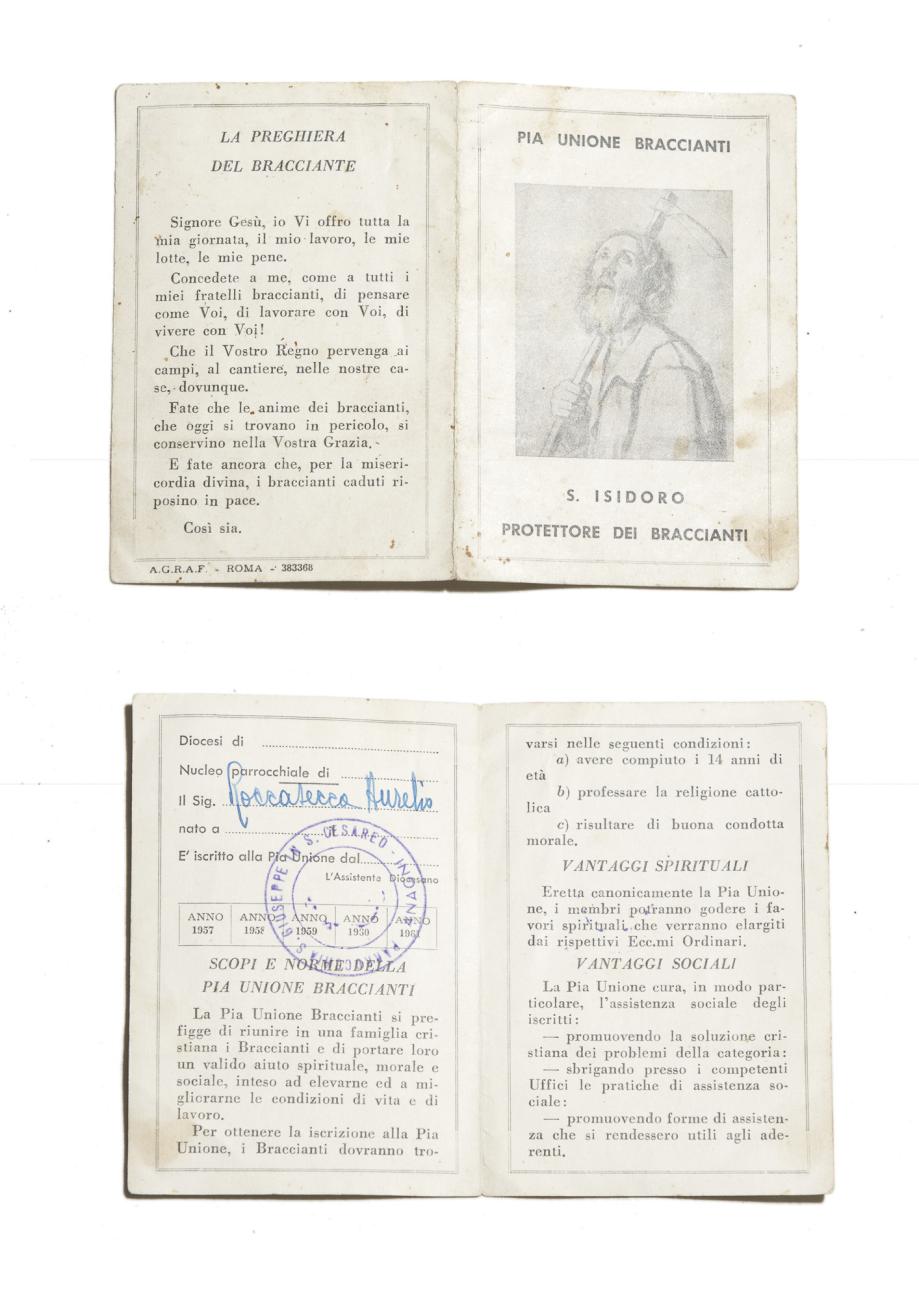 All these elements constitute an identity today and can be used to defend against new abuses and speculations. Citizens play the part of David by triggering fights against the Goliaths responsible for pollution and speculation. Without memory and identity, there would not have been that redemption that often happened. What you're saying also gives the idea of the peasant religious feeling, such as the laborer's prayer and specificities that give a strictly realistic picture: that card used by my maternal grandfather to collect the parcels of provisions of the Marshall Plan. It's about the experience and objective awareness those generations have lived, representing a solid memory aspect.
