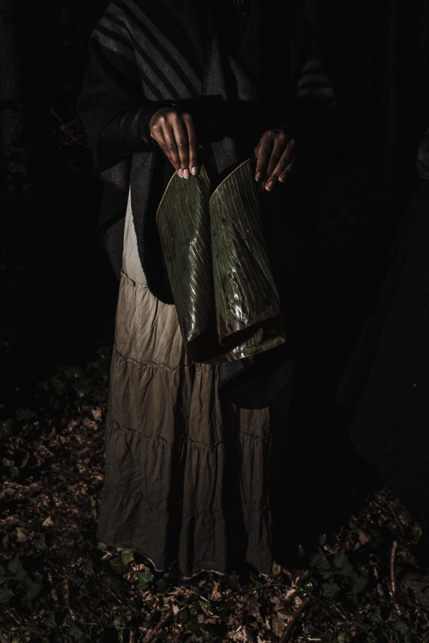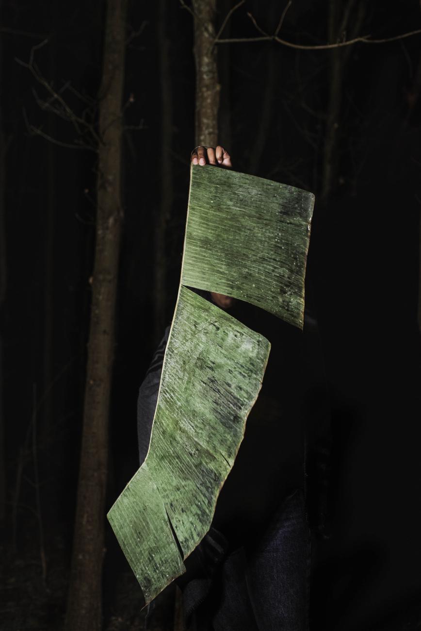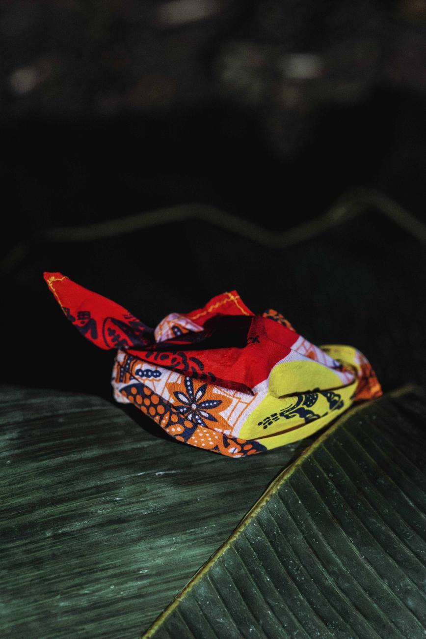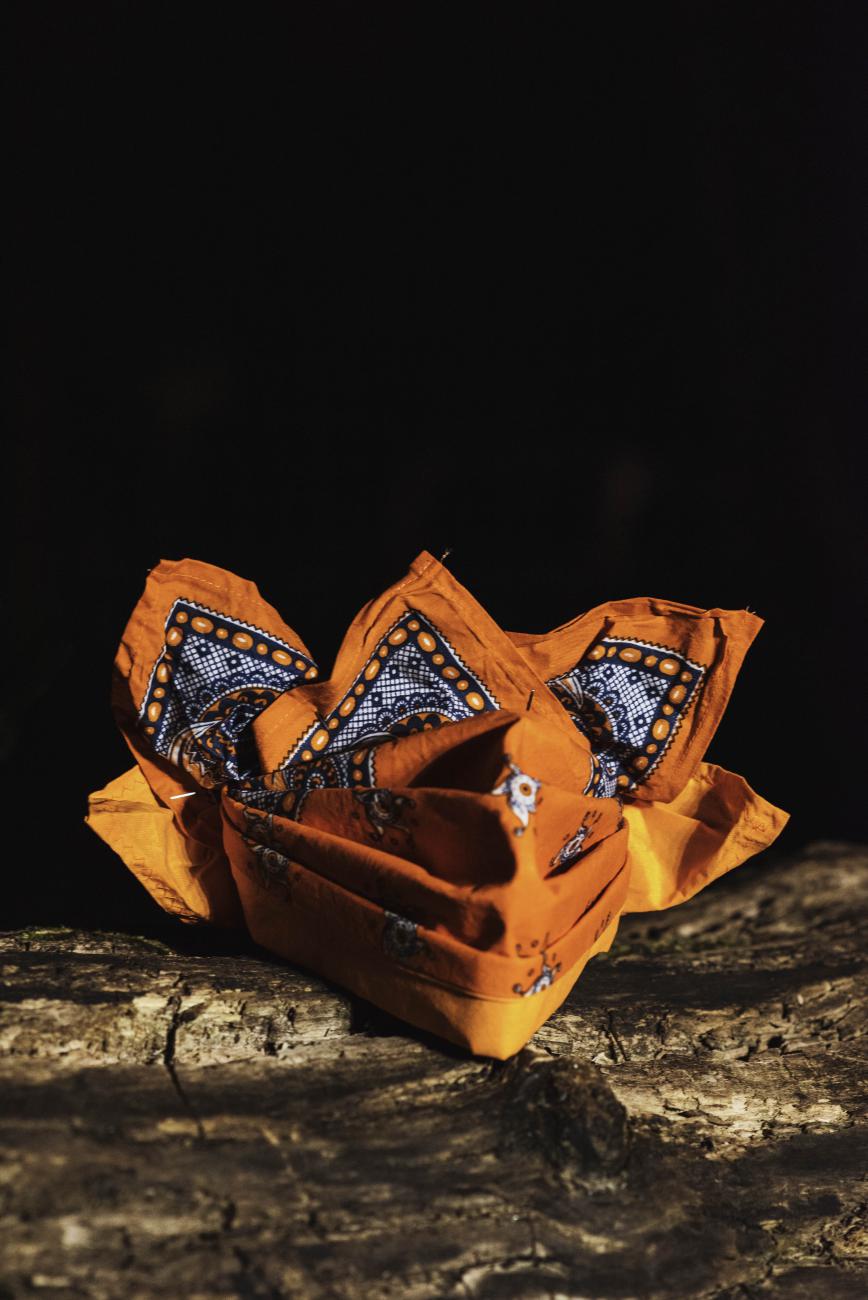 Michelle Piergoelam: The photos of my project ‘The untangled tales’ exist out of two stories, about Anansi the Spider and next to that about Angisa headscarf. The stories of Anansi the spider are based on a storyline structure that was made by the enslaved, by using the characters they could tell about their own stories and thoughts without that the plantation owner knew what they actually meant. The photos in the woods are about the African way of storytelling which is used when you tell an Anansi story. With this way of storytelling, it is important to tell/show the story with big movements and expressions, for example, to use objects what you can find on the ground like branches to express the story.
