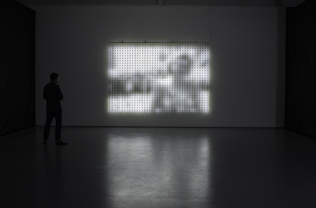 Installation view of the exhibition 'Revisiones: Álbumes, Promesas y Memorias', Jim Campbell. Home Movies, 1040, 2008, Huesca, Spain, 25.11.2016 - 26.02.2017