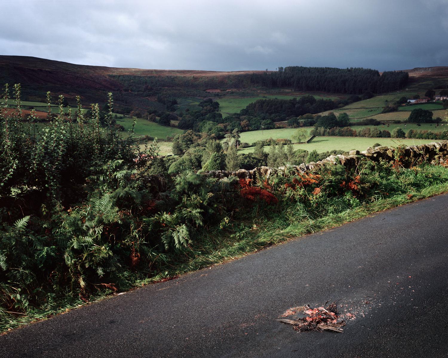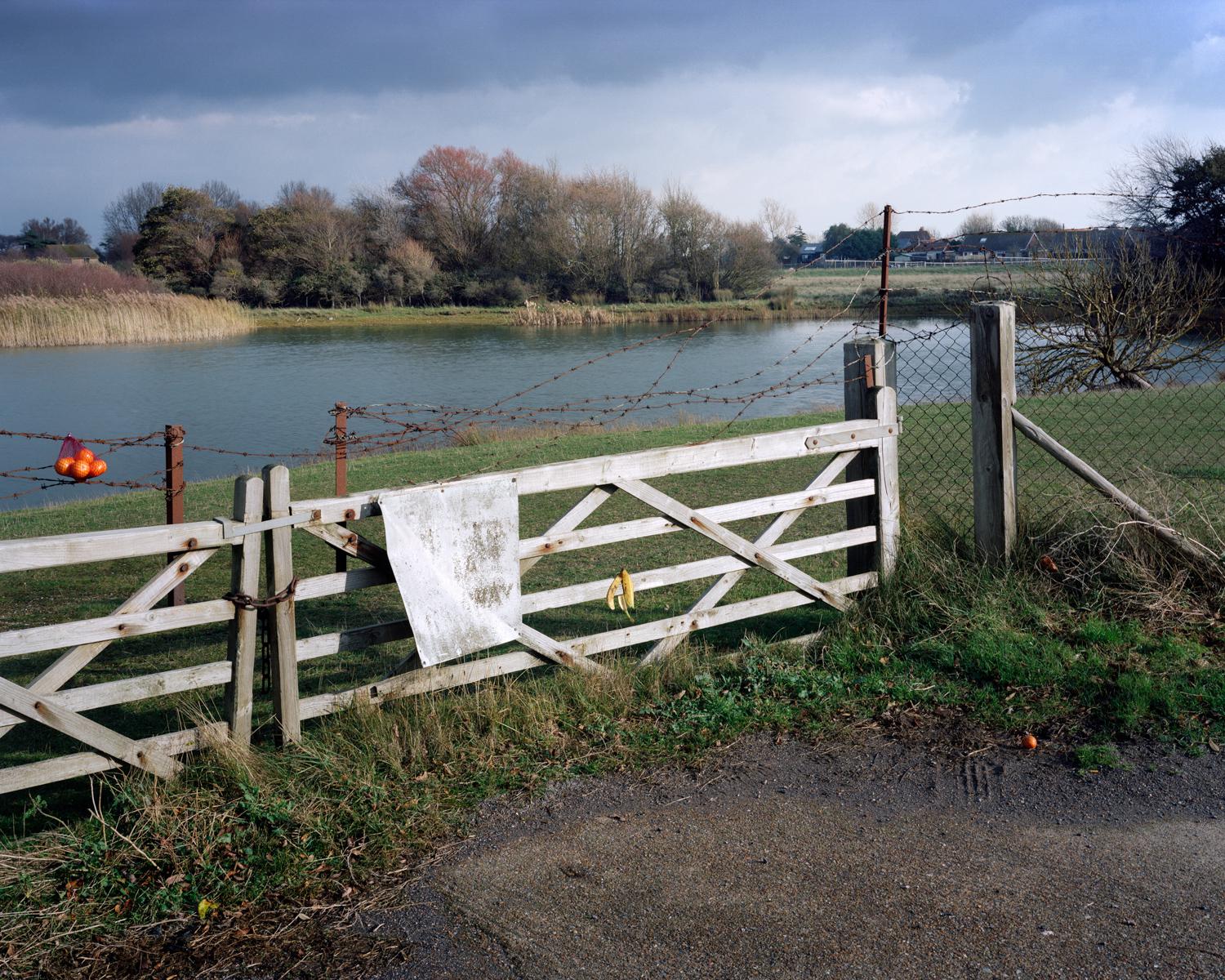 RG: The first photograph I made in England and which is now included in this body of work is the work titled “Fruitful Encounter”, where banana skin and oranges are placed on a fence. In a spontaneous reaction, while waiting for the sun to return, I playfully placed my breakfast on the fence that was keeping me off the land. Only later on did I realize that this symbolic act of marking, or formally altering the scene, had real potential and this thinking started to become an important aspect of my work within the English landscape.