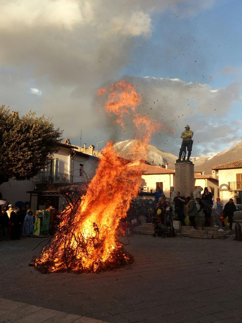 The "favone" (traditional fire) at the Norcia Carnival 2019