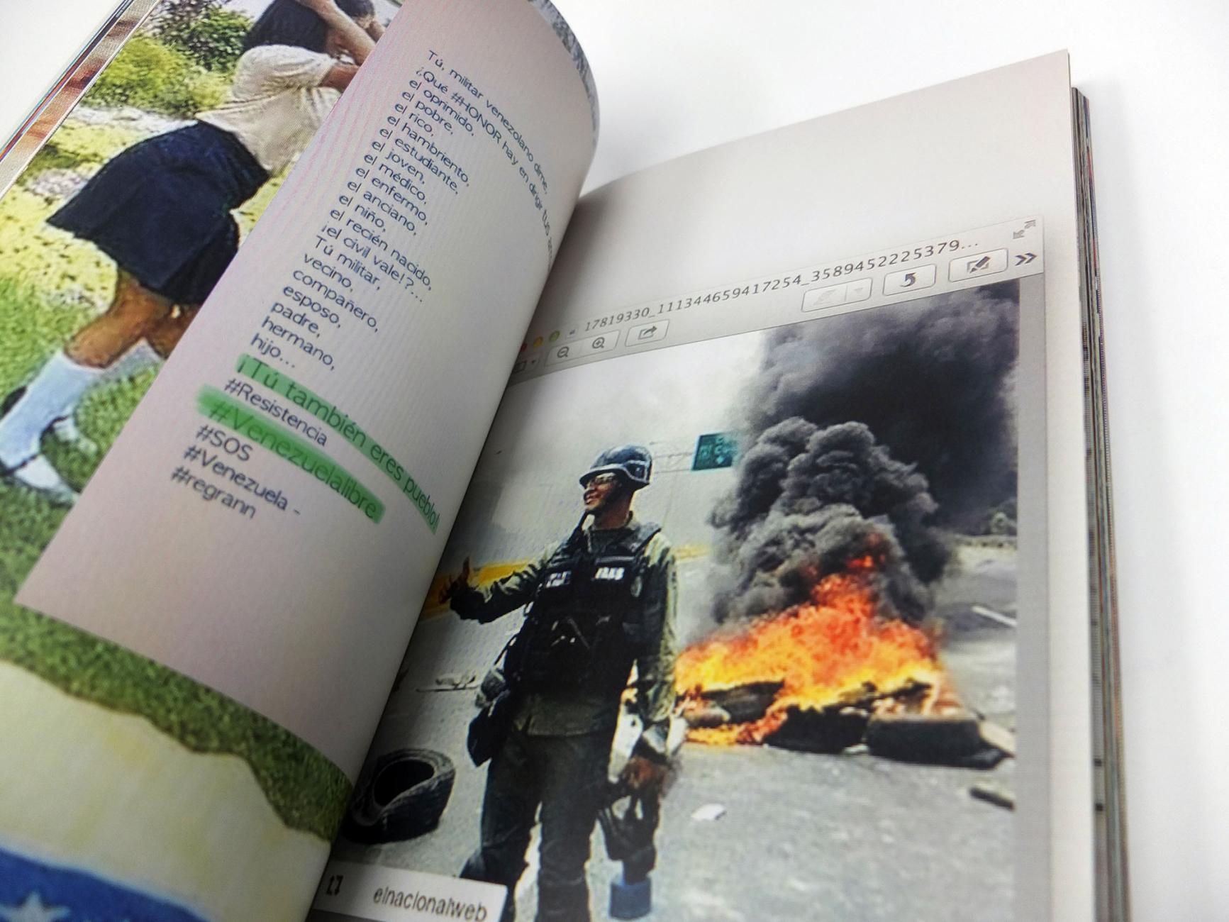 GP: The realization of the project lasted exactly one year. As soon as the followers appeared on my account (it was easy to recognize them as they appeared about fifty every night around midnight) I archived them separately in order to distinguish them from my real followers. Later, I started to look at the individual profiles. A hard phase, which lasted months, as I tried to make a first wide selection of multimedia contents, thousands of texts, words, images and videos. Something was missing in this early collection of "found materials", and so arose the idea to re-photograph the screen of the Mac with my phone (in fact the shape of the high book is narrow, proportionally, equal to that of the screen of an iphone) and to manipolate the images both phisically and digitally. I began to perform on these materials by adding layers and acting directly on the screen as if it was my canvas. In this way I was able to transform them both formally and conceptually, to make them fully mine. To give a new meaning. The book was the right support to give a shape to this meaning. I could have made an encyclopedic book with hundreds of texts and images but I chose a more conscious selection. Now that the book has been made, I realize this was the right choice. The selection of images and texts could have been different, but not the meaning of the book. The path was long, but it was worth it. Every time I finish a project I look back and wonder at the road made. 'The Era of Beyond Truth' is a definitely an original publication with a very particular aesthetic, which at times may seem annoying and "unwatchable" to those who are happy with a pre-packaged vision. A book that marks my research path, and which demonstrates my current interest in the debate on post-photography and on the role that images play in society.