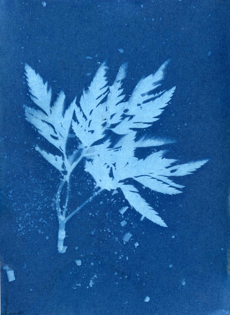 Throughout those two years, we were introduced to various practical techniques, including working with analog photography. One particular experience left a lasting impression on me. Towards the end of the program, during a class excursion, my teacher, David Gagnebin-de Bons, introduced to the class, cyanotype printing. As he pulled out a lightproof bag from his backpack, he distributed pre-coated paper with the cyanotype solution to each of us. We then gathered plants and branches from our surroundings and developed the images in a nearby river. These two cyanotype prints marked the beginning of my artistic journey, as they represented my first foray into creating artwork beyond traditional photography.