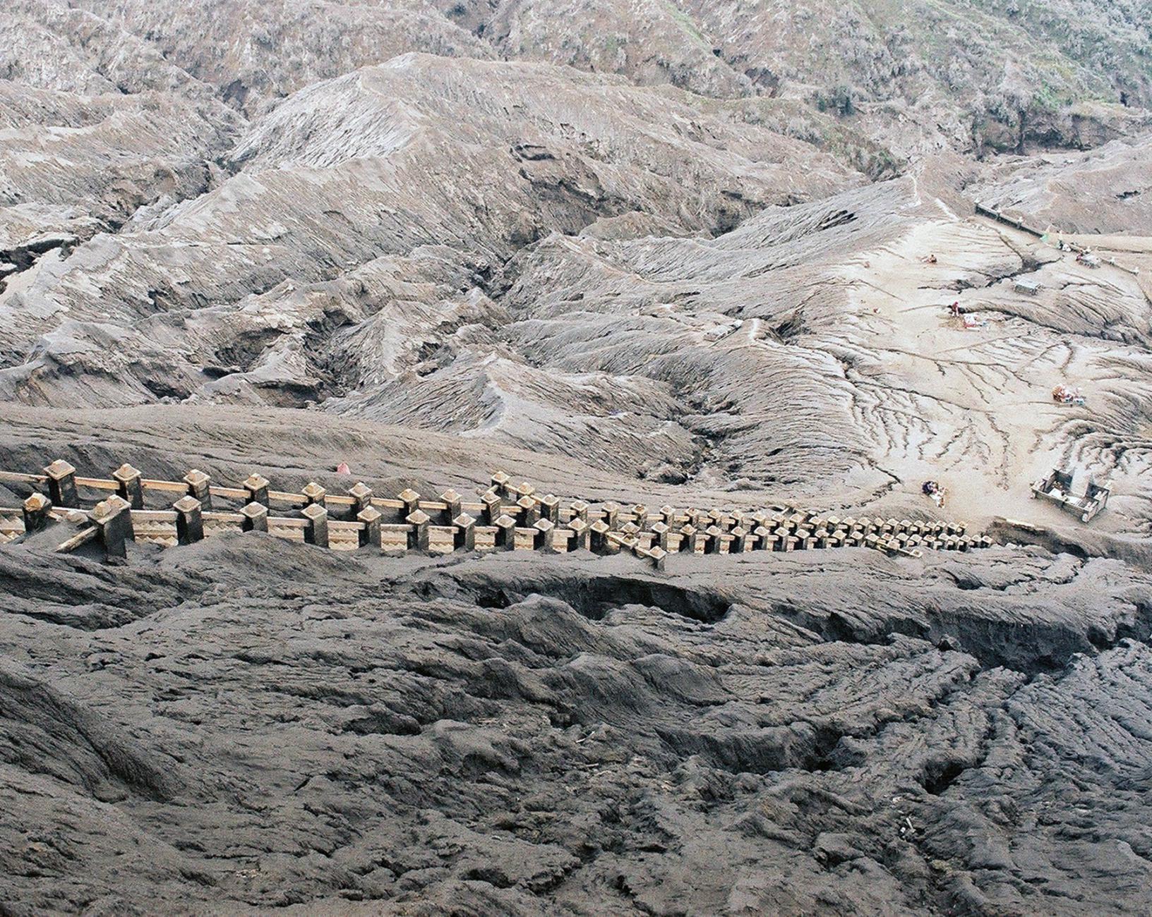 In East Java, and along this trail, lays a vast ancient caldera. Surrounded by a lush mountainous region, the Tengger massif is a large open desert expanse which contains five volcanoes. Draped with sand, volcanic ash and scattered volcanic rocks, it is a celestial terrain, which the Tengger, inhabitants of the area, call the ‘Sea of Sand’.