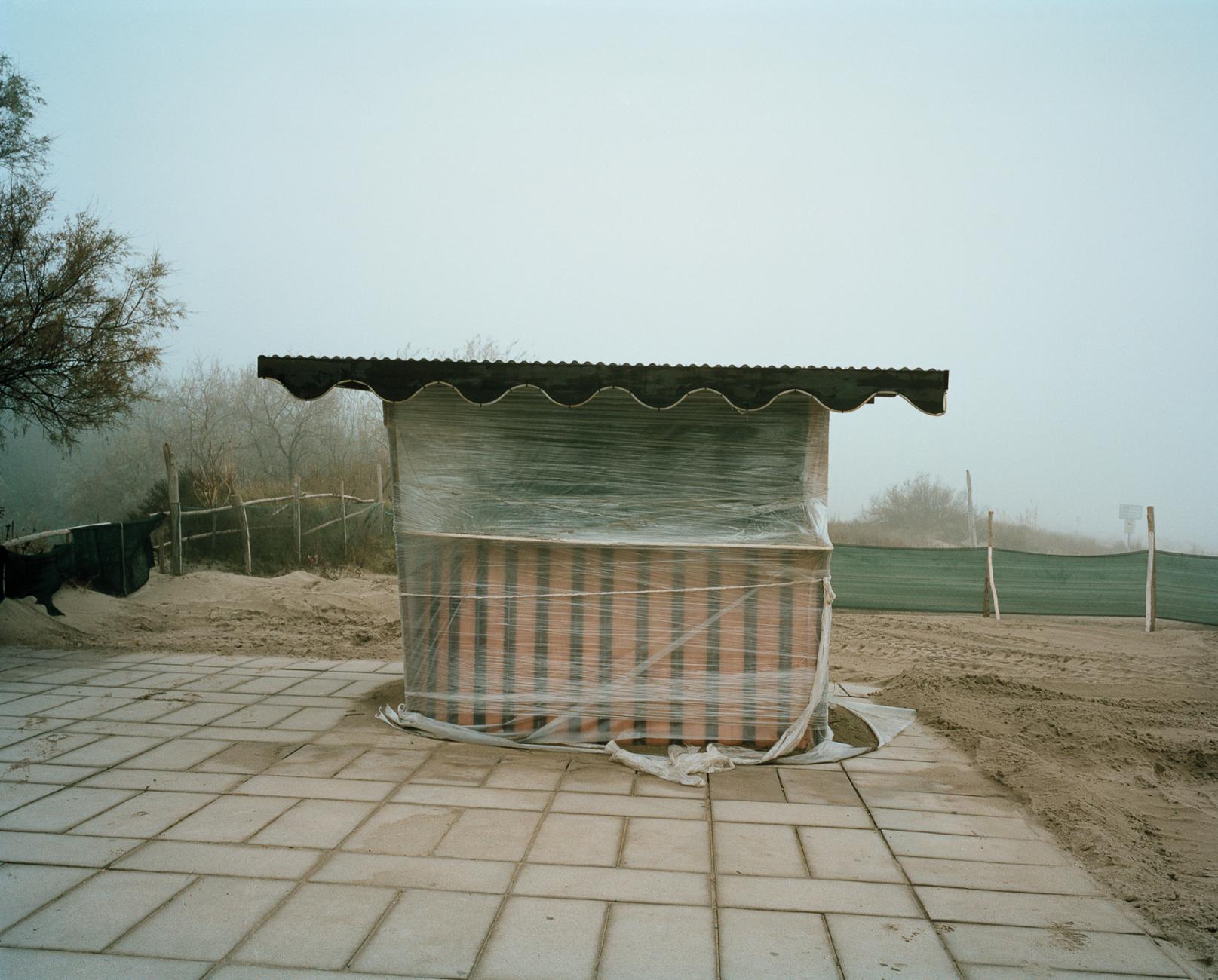 Blue Bar is a body of work about uncertainty as well as the inner desire of personal research, which represents a strong part of human nature. These concepts gain importance, especially when related to the current crisis affecting modern societies. All photographs have been taken between 2016 and 2019 in the Delta region of the longest Italian river, called Po. The river lies below the sea level, which leads to the idea that the territory is constantly threatened by massive flooding and therefore can disappear at any time, as it already happened in the past several times. In this body of work, this particular landscape is used as a metaphor to describe a more universal human condition. The Blue Bar itself is something you are looking for, but it might not even exist. The title is also related to that feeling blue, which Luigi Ghirri - in his essays - refers to when it describes the feeling one gets when hitting the above-mentioned river. The Bar is a symbolic place where to gather after work, but it is also a place where a roamer can rest. Melancholy and uncertainty are the reasons why some people are dragged to wandering around particular areas, seeking something without always knowing exactly what. A sense of melancholy and loss pervades you whilst moving in that territory. It is a place where everybody would want to leave, but at the end all of them stay and deal with this circular way of living, which seems to be always the same. There is so much meaning in the traces people leave in the bleak landscape. The complete body of work consists of 58 images and has become a book published by Artphilein Editions, Lugano. It is the second part of a trilogy about today's human condition started with my first book I wish the world was even, published in April 2019.