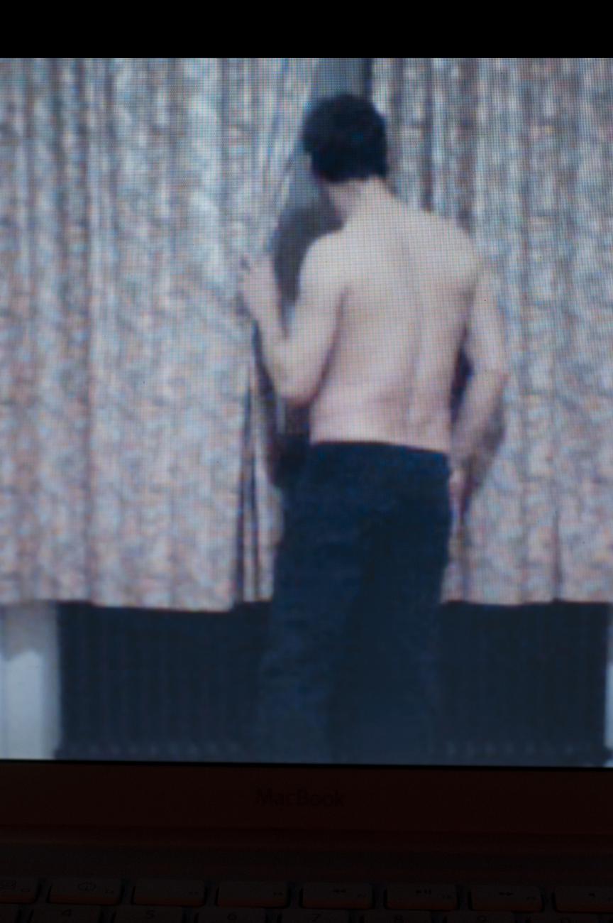 For once, it’s him who is undressed. Passive, he consents to the injunctions of the woman’s voice that emanates from the computer, guiding him in his poses. The pictures were taken during Skype video chats that lasted between 15 and 45 minutes. During these sessions, any participating man would undress and had to be bare-chested at the very least. On one condition: anonymity. No physical criteria, nothing pre-defined. They cannot see the photographer who photographs her screen and, through it, men she never met before, in their bedrooms. They are directed from a distance. They don’t exactly know what picture of them is taken. And then the screens turn off. This body of work is about dehumanisation, vulnerability, and distant relationships; the difficulty of bringing intimacy and being in contact with the otherness and the eagerness to please. The camera, the different rooms, the screen, become an observation box of these casual men. It questions the desire to be looked at, by scrutinizing their physical though virtual presence – it being impressive or elusive, desirable or made of mixed feelings. It also suggests the tiredness of having to exist in the other’s eyes as an object of desire. Thereby, this series also questions the viewer-voyeur role of the audience. While the low-fi aesthetics of the work refers to functional images one could find and use by using social media or other meeting apps.