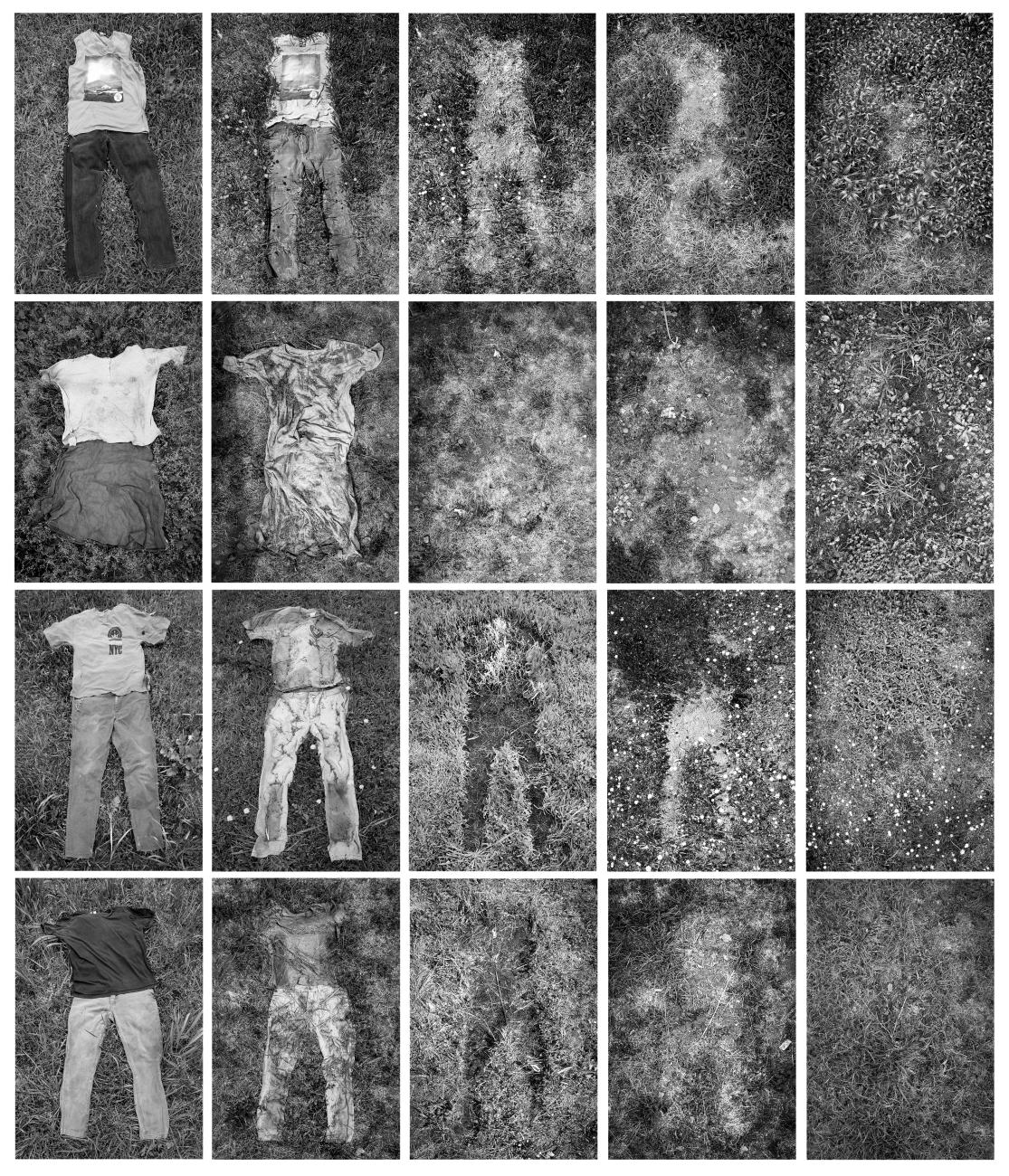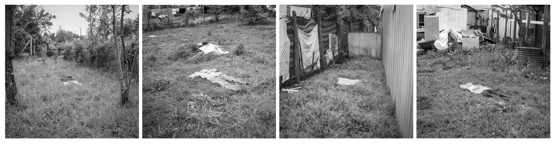 In different places in the backyard, unused areas, I distributed garments from each of the inhabitants of my house (Father, Mother, Brother, and myself), which remained in the same place for over a month. Once removed, I photographed the mark impressed on the grass programmatically until its disappearance. In the middle of the pandemic confinement, to print the mark of the inhabitants in their own backyard and expose it to its becoming until it is erased, is to point out the emptiness and uncertainty that crushed us. The action conjures up a ghost, like a photogram on the grass that reveals that something was lost. More than ever, life was concentrated within the confines of the house, while in the backyard the mark continuously transformed its image from within, turning the backyard into an ephemeral map of four islands.