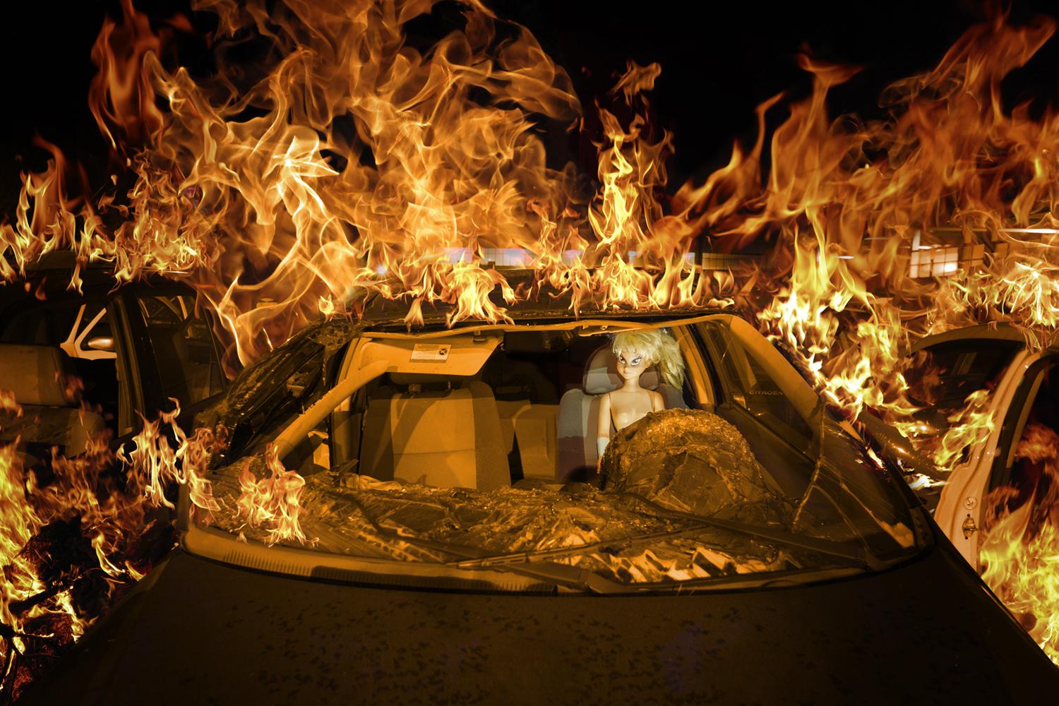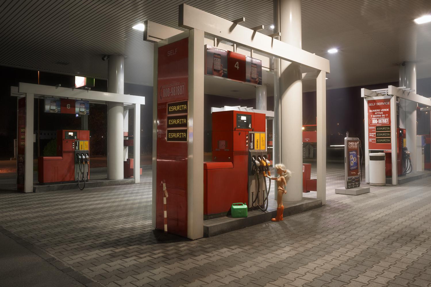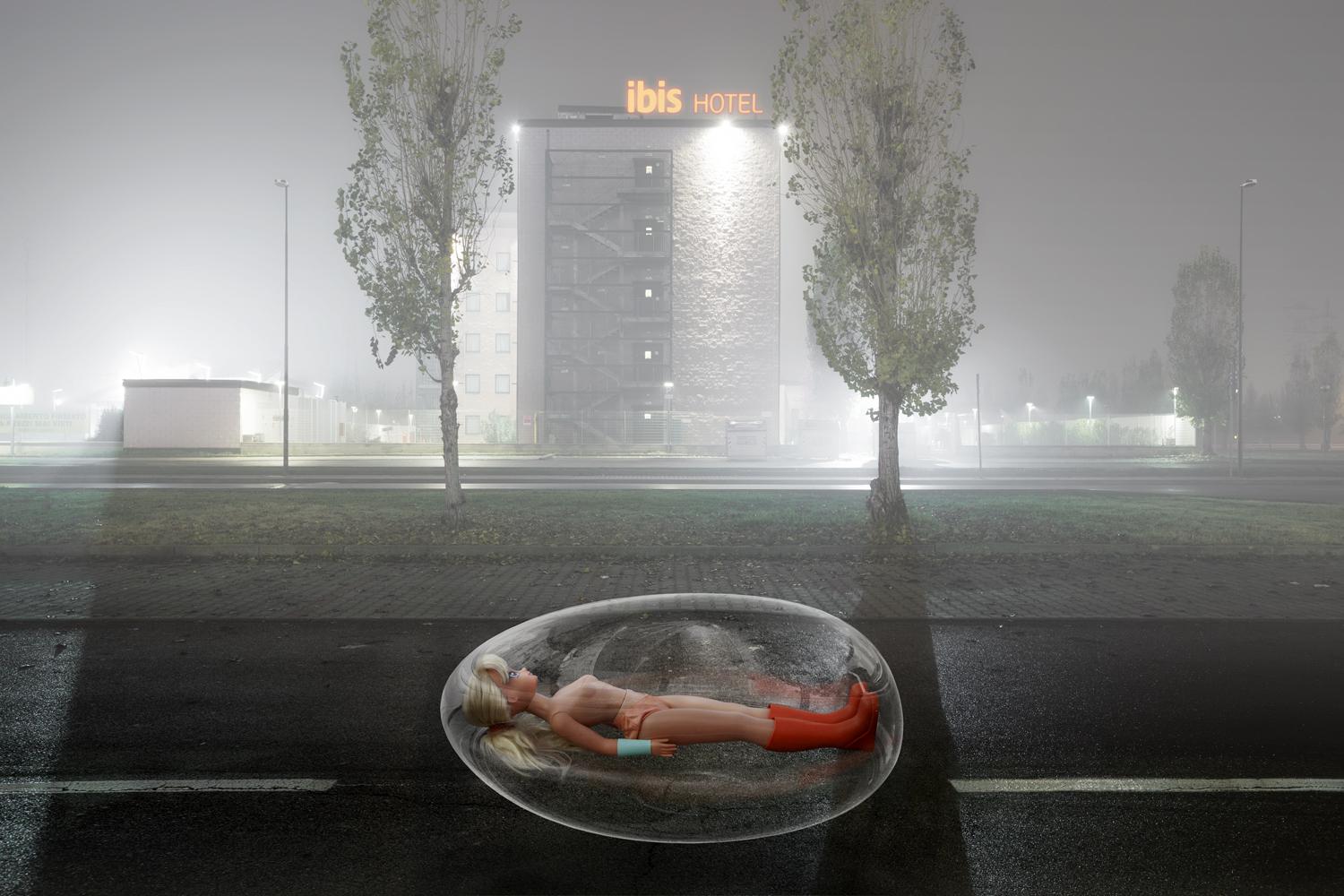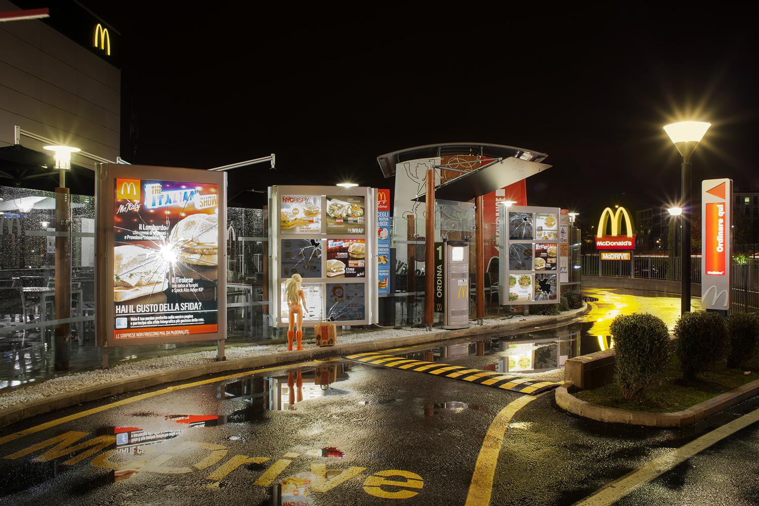 Cinematic and literary suggestions are the basis of every image, in which the strong reference to the sci-fi settings of Philip Dick and following dystopian visions stand out. These are the symbols of consumerism. Stripped of their function, they become totems worshiped by an inanimate doll, and showing a cross-section of a future that is inexorably approaching.