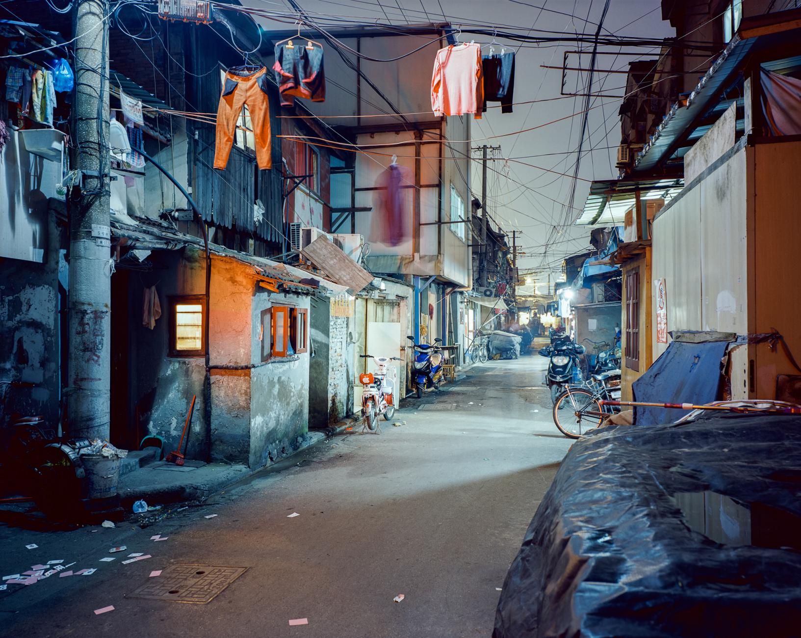 China is one of the largest countries on Earth; it has the largest population in the world, the second-largest economy, the largest army with significant geopolitical ambitions in Asia and the world as a whole. It is also one of the rare countries still influenced by the communist ideology. News headlines in Western cultures often present China in a less than flattering way: human rights violations, labor camps, ecological problems, militarization, one-party dictatorship, etc. My images do not prevent anyone from thinking about all of the above. However, the intention behind them is not to reproduce the sensationalist and totally dull visual rhetoric typical of photojournalism. Perhaps the visual language applied in the photograph is used in a way that does not reveal, but rather surprises and provides the pleasure of viewing, even in those situations where the depicted reality is repulsive. The nocturnal city landscapes of sparkling skyscrapers become less desirable when one was to examine them more closely and notice the crumbling holes in the walls of buildings that have occurred in the spirit of communist construction, using poor-quality materials or due to builder negligence. Partly demolished private houses next to new building areas where the last inhabitants of the social hells still live. The only watering option for the well-maintained and weeded gardens is the dirty, tarlike water running the adjacent ditch. Dancers, whose romantic intimacy often ends on the same evening as the end of the regular evening exercise session in the shadows of some newly constructed building's fence. Unfortunately, the paternalism of the photographic language denies access to the reality, and leaves only one's imagination. After a series of trips to China from 2013 to 2017, I do not think I have become wiser about its culture, everyday life, sociopolitical activities, even though I really had both the desire and the time to look at, to see and think about the place and the people in it. In my opinion, the real way to discover the spirit of place and time is to be able to see the special in the simple and mundane, which is also the basis of these photographs.
