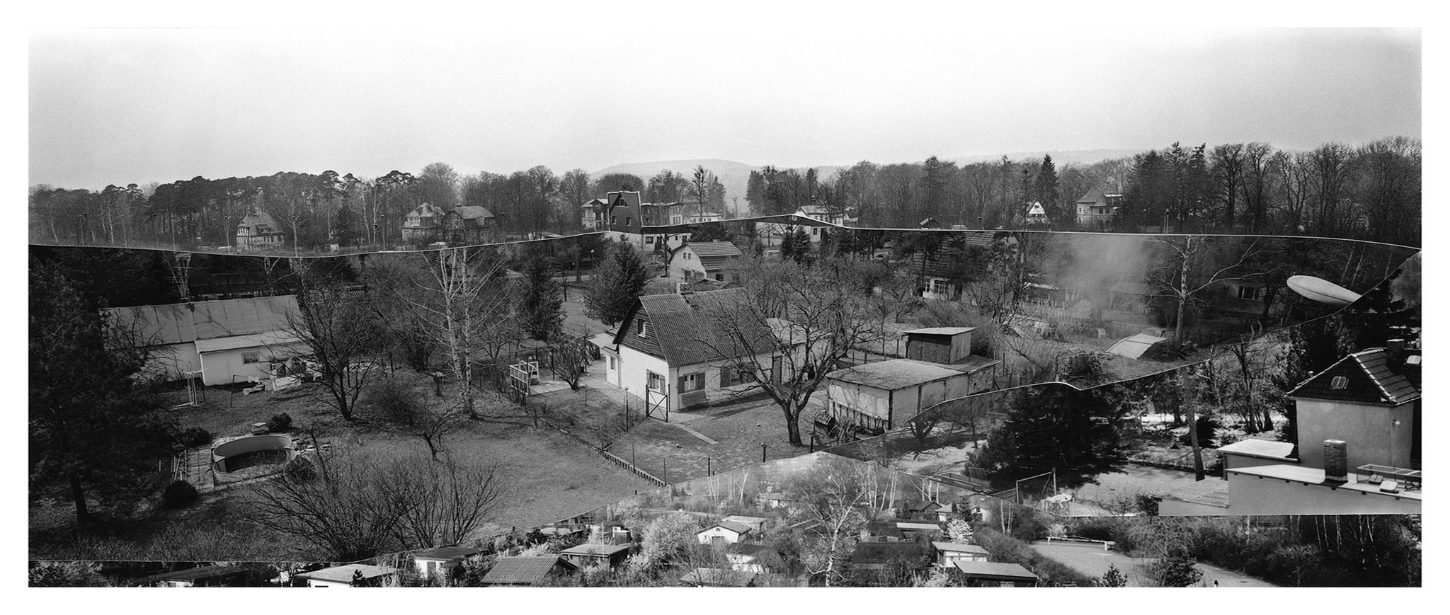 In 2022, I conducted in-depth research at the Stasi Records Archive during my artist residency at Künstlerhaus Bethanien in Berlin. Since East German citizens were not permitted to photograph the Berlin Wall, the only images from the East German side were those taken by the Stasi, short for The Ministry for State Security - the intelligence service and secret police. Among thousands of Stasi images, I discovered 134 panoramic photos of the Berlin Wall that an archivist scanned for me. After printing, I cut out the Berlin Wall and the Death Strip and assembled the pieces to create new, utopian landscapes of Berlin without the Berlin Wall. I set up the rule that I had to use each of the 134 cut-out pieces in one of the 23 collages. The collages are included in my recent monograph, The Absence and Presence of the Berlin Wall / Die Ab- und Anwesenheit der Berliner Mauer, which was published by DISTANZ in English and German editions in August 2025. The book spans 350 pages, includes 209 images, and engages with questions of national identity and borders, exploring the current state of German reunification.