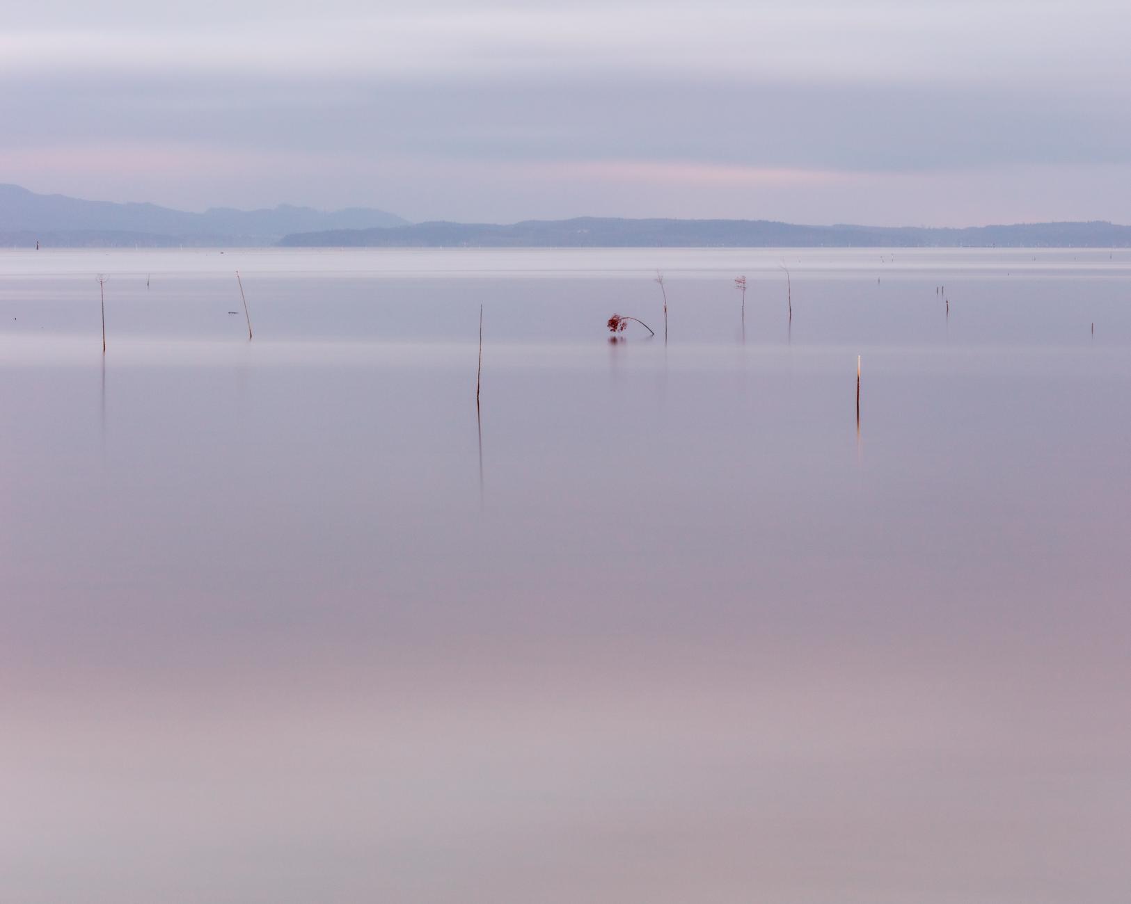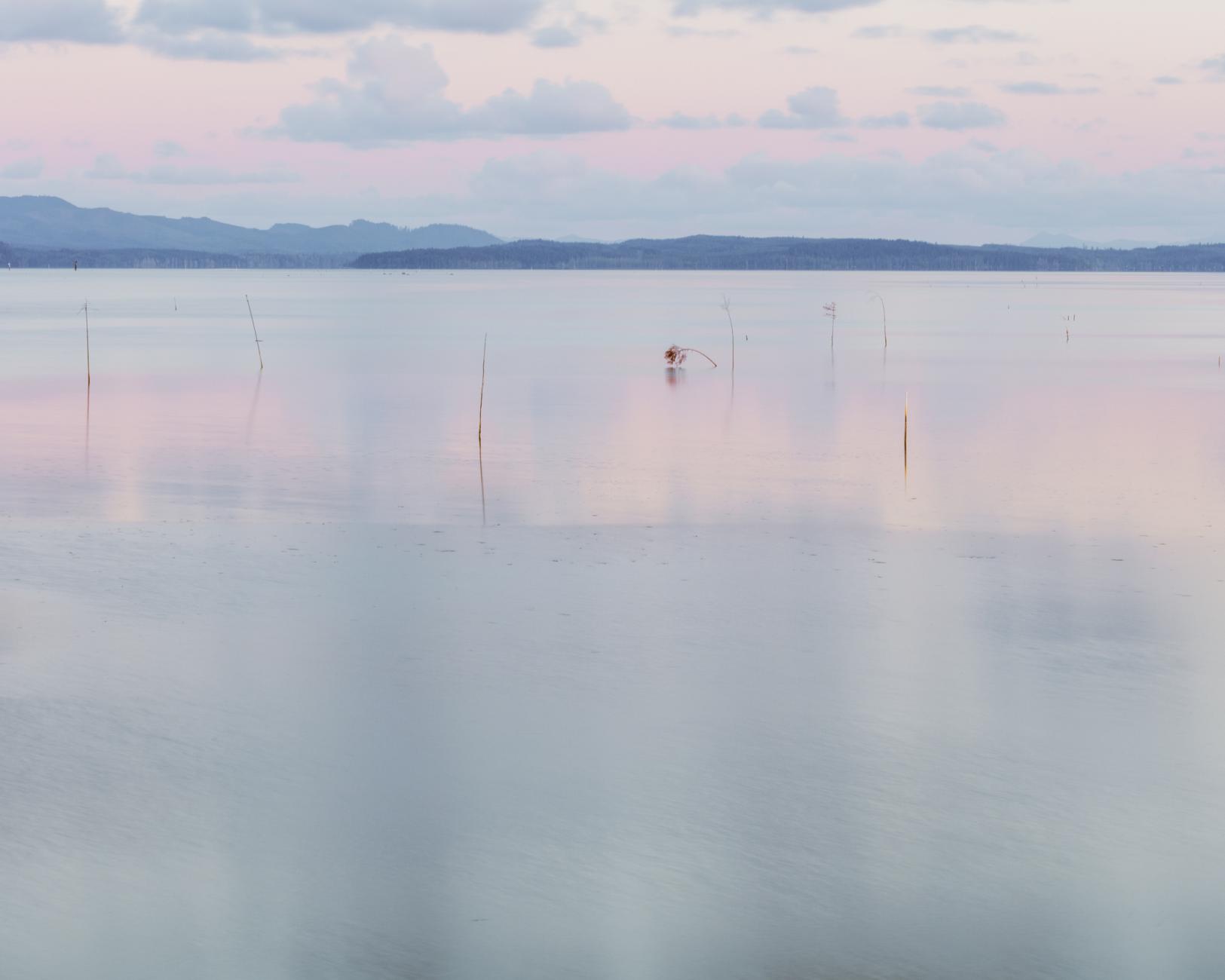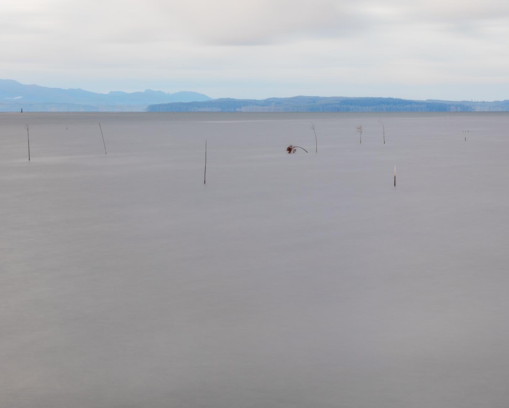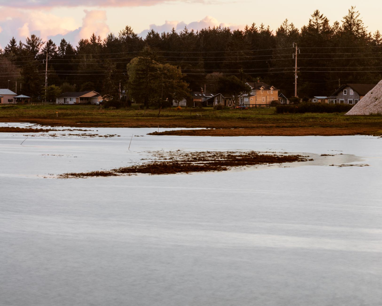 Precarity and Shore is a meditation on an impending flood. It was made on the Long Beach Peninsula, a narrow strip of land just above sea level that juts out into the Pacific Ocean off the coast of Washington State, in the northwestern United States. Beside the peninsula is Willapa Bay, where the tide rises up to nearly touch roads and homes. The peninsula is in danger of being swallowed by the sea in a matter of decades.
