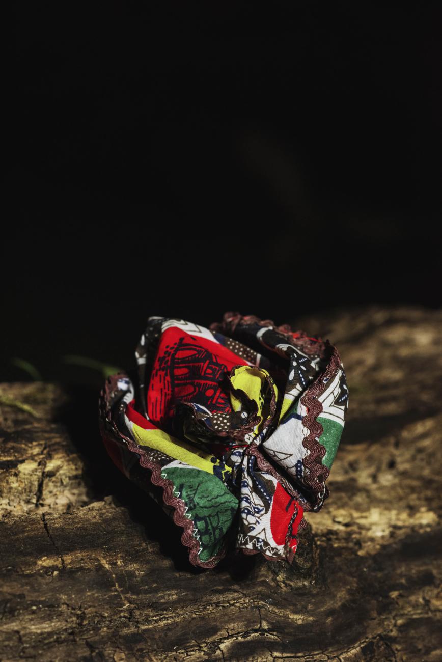 Er tin tin, sigri tin tin… Once upon a time, long ago… Tales were told that everyone could hear, but not everyone could understand. Numerous stories tell about the mythical spider Anansi who had to deal with a tiger who tried to make his life miserable. Although the spider was physically weaker, it was often able to defeat the tiger with its cleverness and cunning. Is it really just a myth? These stories, passed down from Africa to Suriname, and from generation to generation, enabled slaves to share their thoughts without the slaveholder knowing what was actually meant. In a similar way, the Angisa’s worn by women were not only beautiful headkerchiefs: their intricate folds contained hidden stories and wisdoms that could only be read by those who had learned to. Through memories and imagination, ‘The untangled tales’ visualizes the stories of the Anansi storytellers and the Angisa-folders, and the ways in which these traditions allow us to glimpse at the years of slavery.