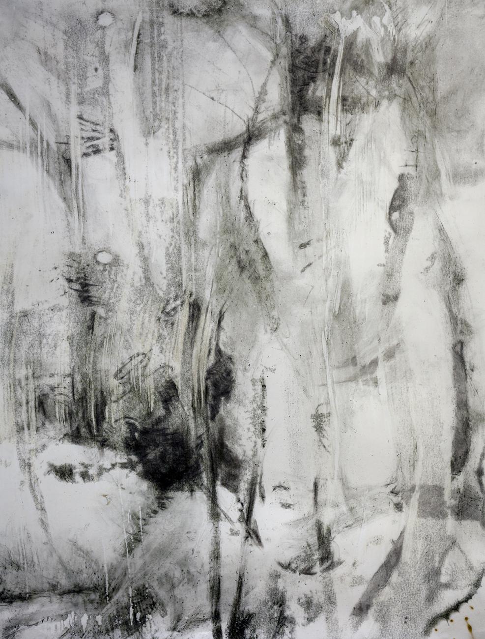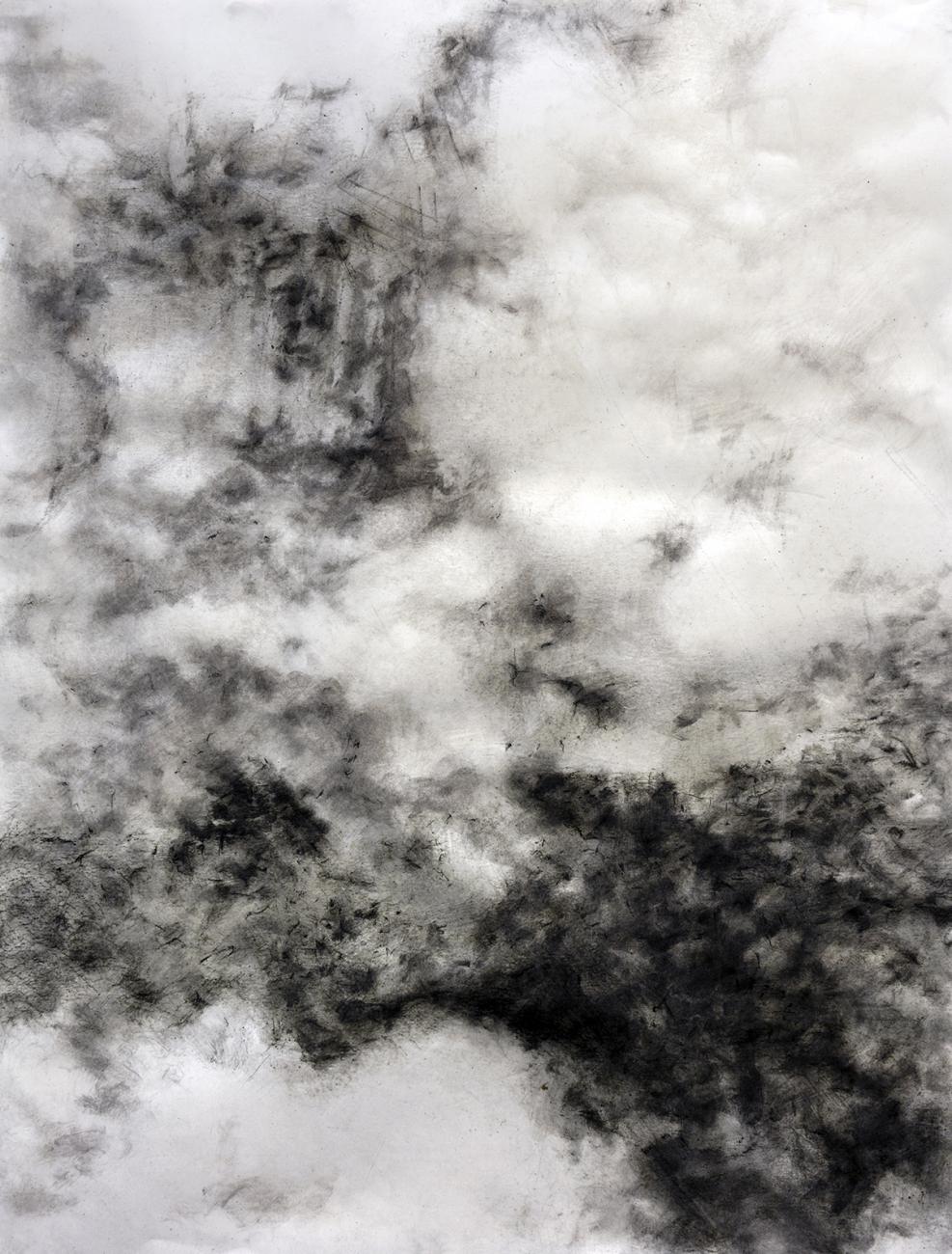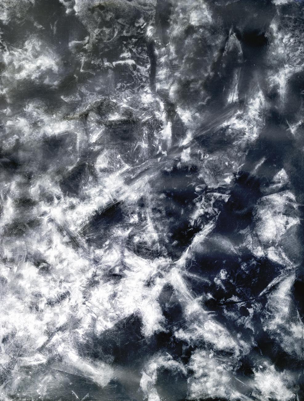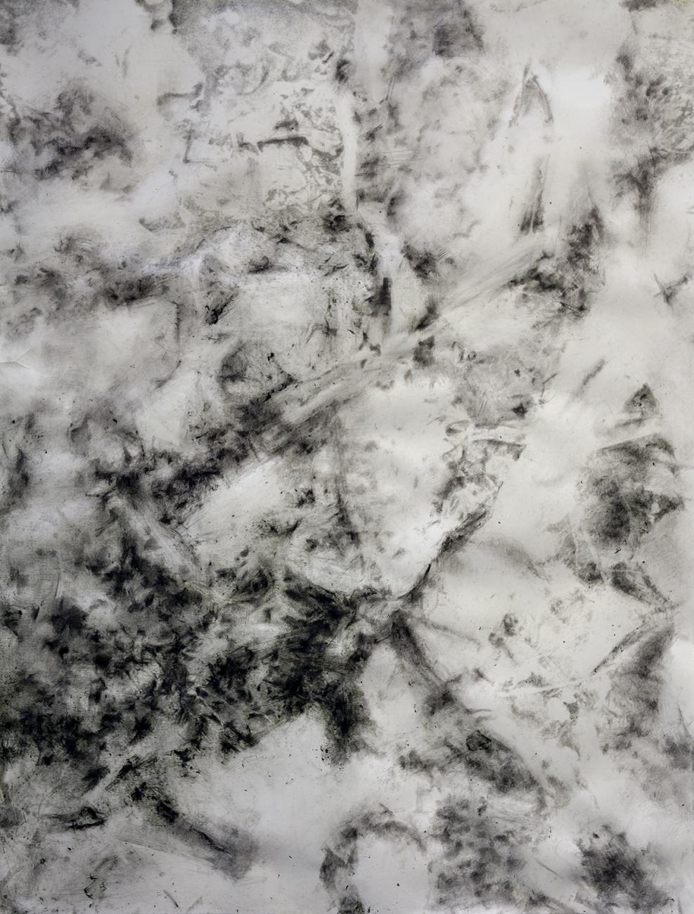 The original photographs are small, direct positive 3x4” Polaroid images that are hand-drawn over in pencil then rephotographed and enlarged, reworked in pencil and rephotographed again. Each step alternates the creation of empty spaces with the filling of them, the expansion through enlargement is stepping closer to and into the image, producing a passage to new territories previously hidden. The result is a large scale rendering of a landscape and a new photographic representation, an inversion of the drawing that creates a correlation where both documents differently interpret the same scene. These artworks leave entirely behind the original 3x4” image source they were born from to produce new highly perceptual images of fluctuating landscapes.