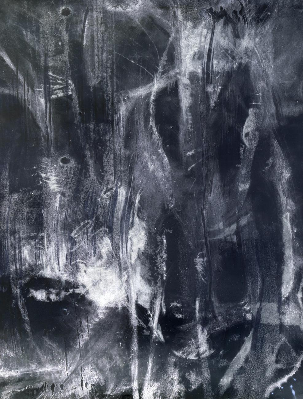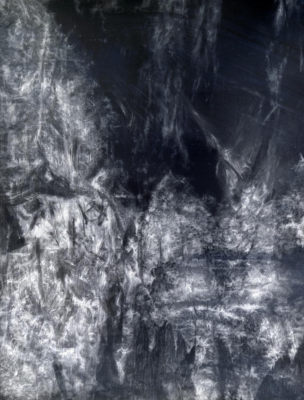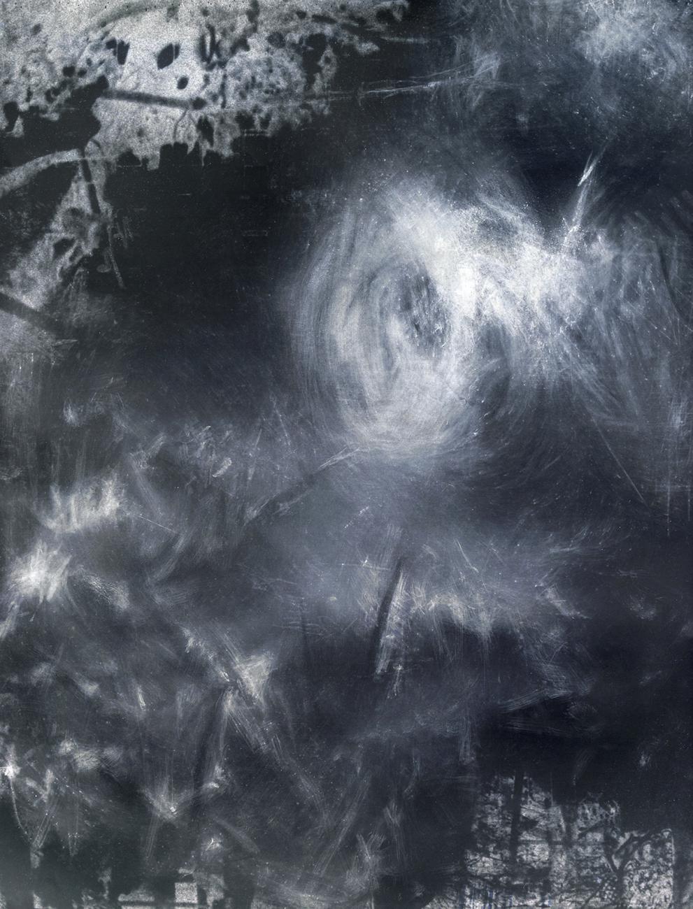 'Voci Fuori Campo' is comprised of two series of binary artworks, Darkness Above and Light Below, developed “failed” images of New York City’s small urban gardens, where overexposure or insufficient chemistry resulted in material corrosion and the value of the photograph as a visual record of a time and place. Paradoxically, the agency of light required to produce photos also destroys them, and whereas ordinarily black would represent a lack of information, the voids become white. Through these emptied pictorial spaces I render by hand not a literal representation of the lost landscapes, but the memory of how my eye experienced and moved through those dynamic spaces of hallucinatory light, shadow, life, and time.