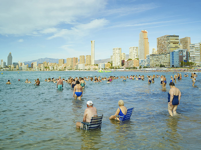 Half way along the Costa Blanca region of Spain, between Valencia and Alicante, sits the strange seaside resort of Benidorm. Containing the most high-rise buildings per capita in the World, I’d seen it many times whilst passing by on the Autopista de la Mediterrania and I’d always thought it looked unreal, as if New York City had been dumped on the Spanish coast. So in September 2015 I thought it about time I went and had a proper look. Benidorm has something of a reputation here in the UK as a grotty destination for British holiday makers looking for some cheap sun, beer and all-day full English breakfast and I guess I was rather expecting to find this. But this was nothing like the Benidorm I encountered. It would seem that, once August is over, the Brits disappear and the cheap hotel rooms and bars are filled with Spanish senior citizens. By 11, the beaches were packed with old folks soaking up the sun, doing low impact exercise classes and standing en-masse in the sea. Perhaps I should return to see how the Brits treat the place, but my two days in the company of the elderly Spanish at leisure was a gentle way to view this brutal slice of Spain.