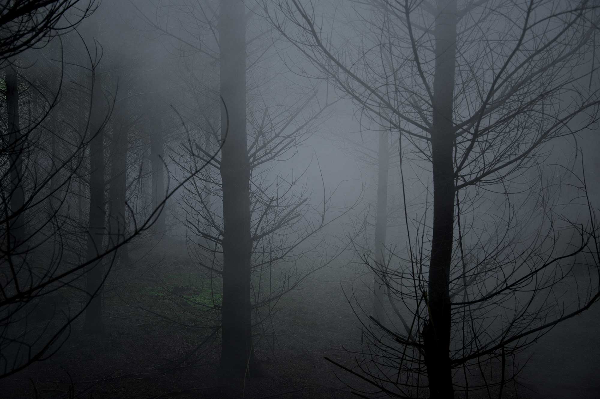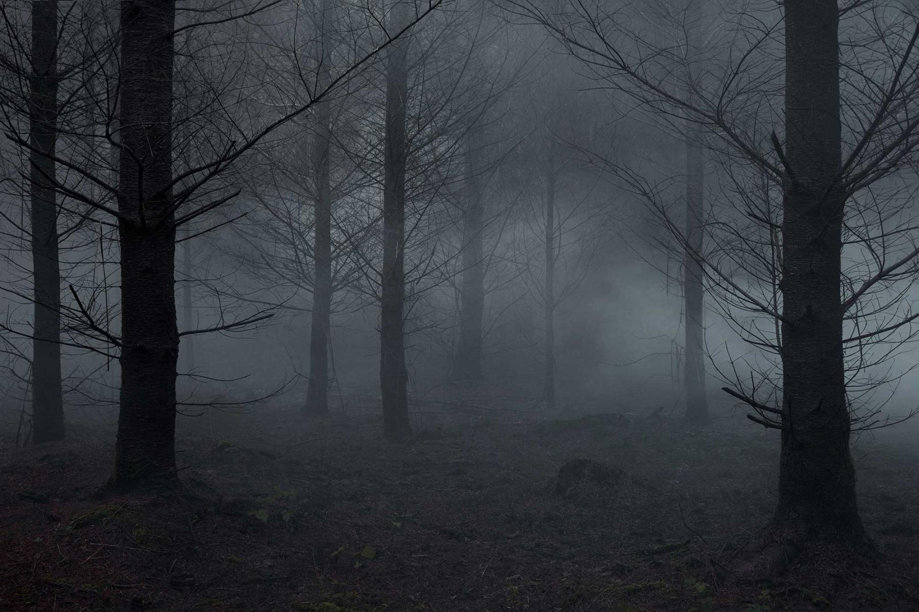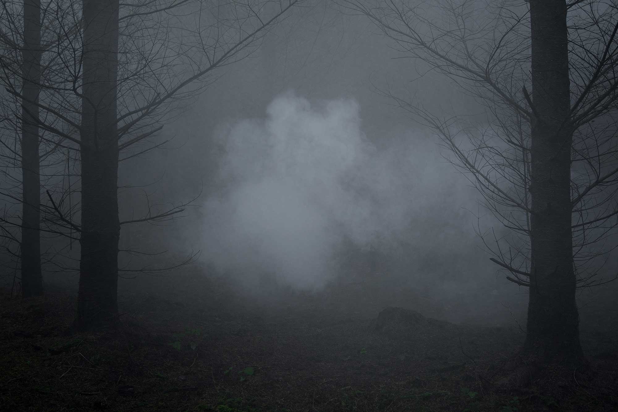 Swirling, hanging and drifting smoke allows us to observe not only time moving at an almost imperceptible pace, but also to focus on the interior space that is very much part of ‘the forest’, guiding the eye away from the trees and allowing it to linger on this ‘betweenness’. Suspended and still, the smoke fills the spaces between the trees, and reflects our physical experience of these places: the palpable and brooding cognisance of the forest, the muffled and flattened sound, the prickling sense of heightened awareness. The ethereal mist fills the gaps to show the spaces between, as if we can slip through and escape the bounds of time.
