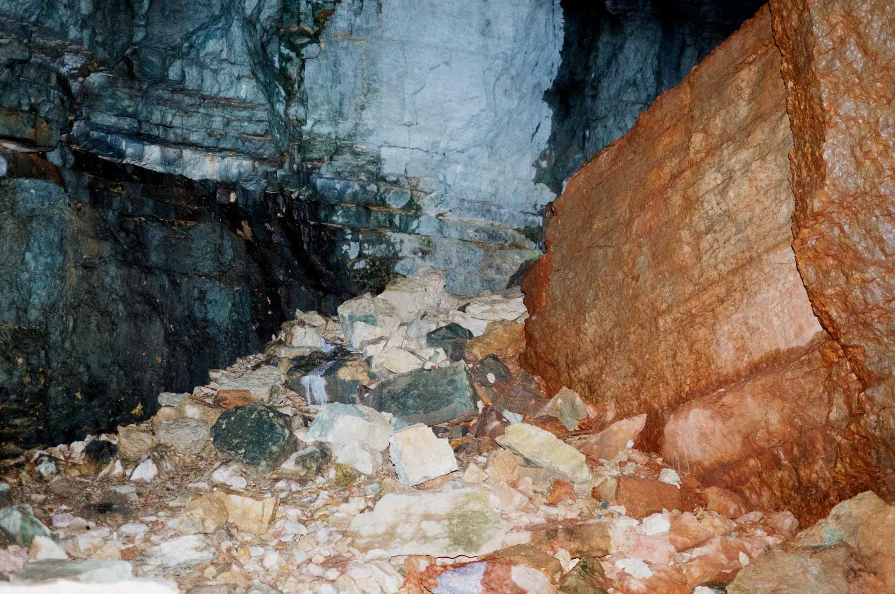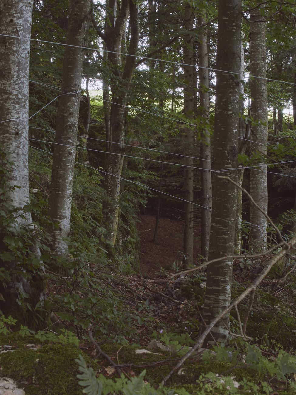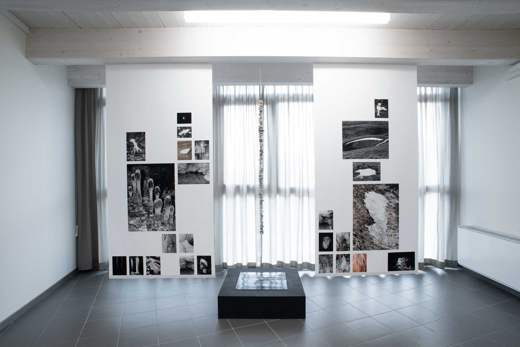 In the furrow traced by Long moves intentionally Davide Galandini who brings to the surface the presence of columnar basalts in Lessinia. He ideally recovers a disused path, once traveled by locals, thus raising an environmental awareness, and a cognitive space built upon the memories of past generations who were used to bath at the bottom of the Lago Tondo, close to this magnificent geological structures. His outdoor installation is an invitation not to be overwhelmed by indifference. He marks his territory with his own goodwill well before that with a stone. Ana Blagojevic takes a similar path but rather more personal. Her journey "to the center of the earth", among the typical karst cavities of Lessinia, is a tense and difficult path in the dark soul of the mountain. A chance for Ana to measure her own limits, fears, hopes. Her personal hidden territory, just as in nature there is always a dark side.