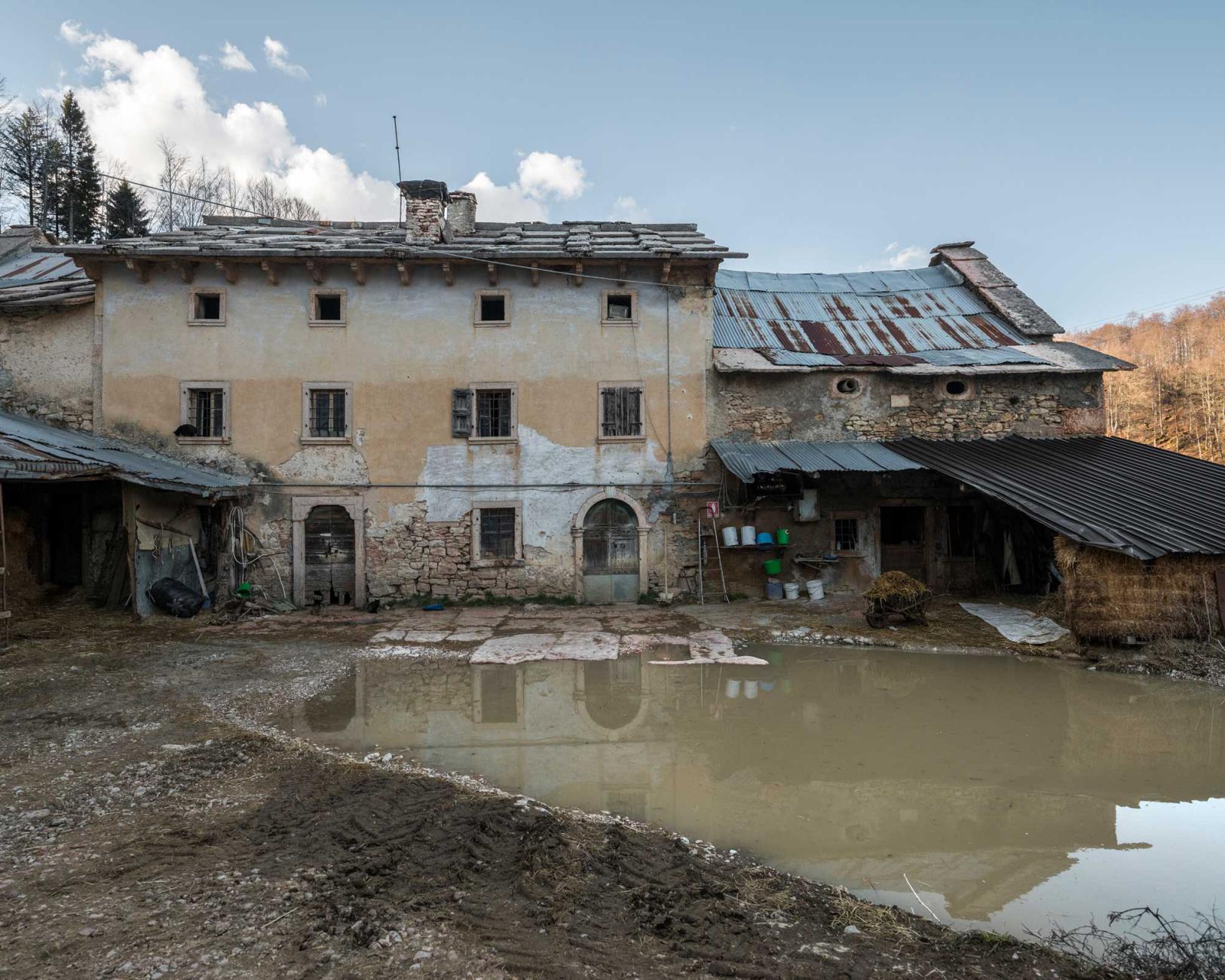 In the photographic series 'Diaframma 11, 1/125, luce naturale' (1970-1979) Luigi Ghirri portrays people from behind, in the act of observing either a map, a picture or something else. This creates a different depth and puts the accent on the role of the photographer in the staging. The artist is part of the scene, and his/her gaze will never be omnipotent. Basically the artist is betrayed by his/her own personality/filter. This raises questions about the ultimate ability to restore through photography the identity of a place. Identity does not exist by itself, it is the result of a social relationship. Therefore human relationships must be deepened, and this requires time and patience. The latest being a quality hardly grown by photographers moved by anxiety. Lessinia is not a map, but an archipelago of small communities, each with their stories that go back in time and recall ancient beliefs, gestures and rituals. Among the mountains, these stories still retained a pagan aftertaste, as peoples who lived in the woods respected their secrets and properties. The stories were transmitted orally, each one with a different accent. Thanks to these stories, listening, rhythm and music were practiced. Today, however, the stories are made with few images that obstruct the sight, often with the arrogance of objectivity. Emanuele Brutti has chosen to tell the legends and fables typical of the oral tradition of the Lessini mountains. During the long winter these stories were told in the stable because it was warmer there. Close to the animals. And their contents were mingled with beliefs and "village" facts. Today these words still feed new fantasies and artistic interpretations.